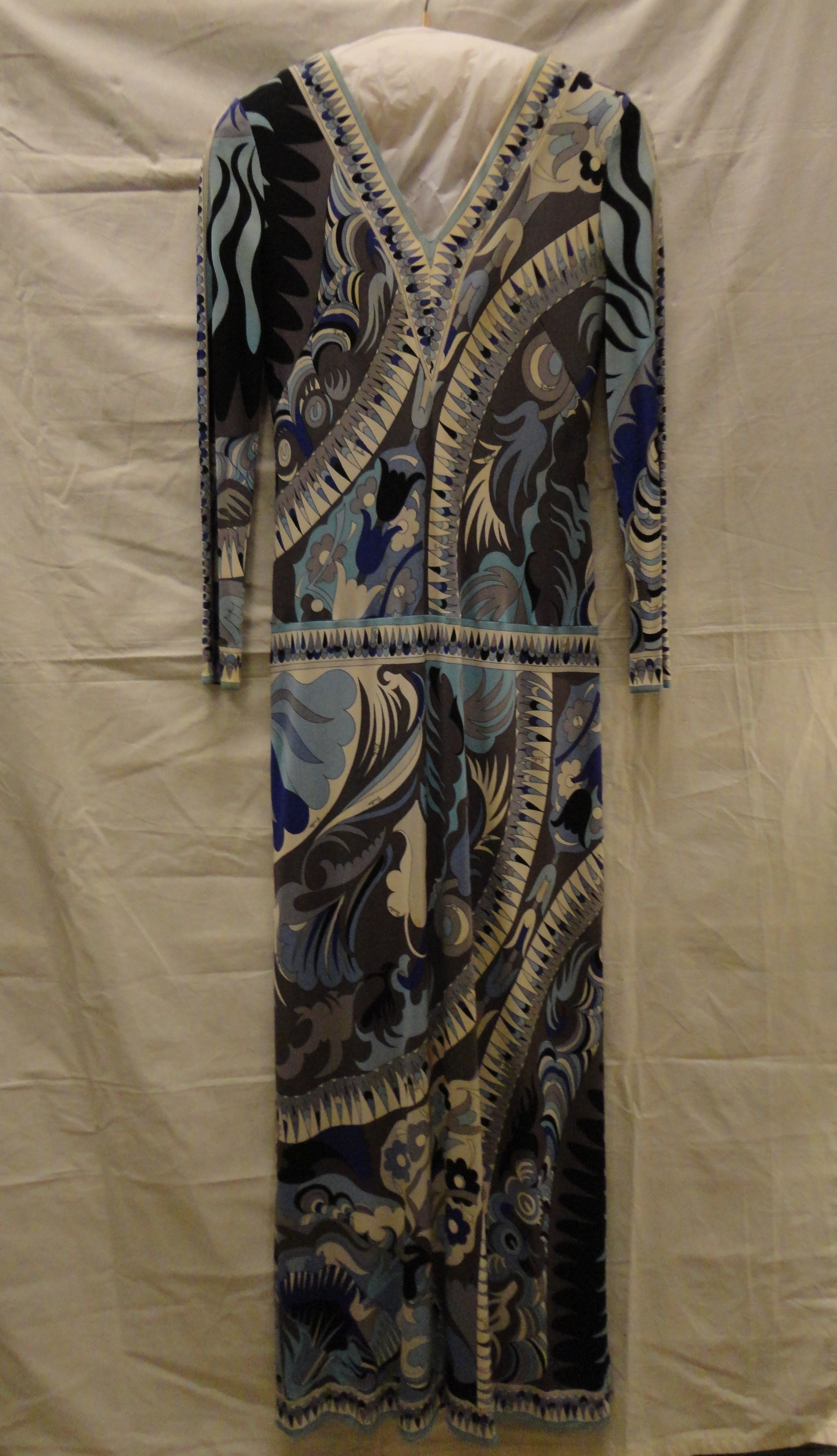 Jurk van wit zijden tricot bedrukt met gestileerde f...