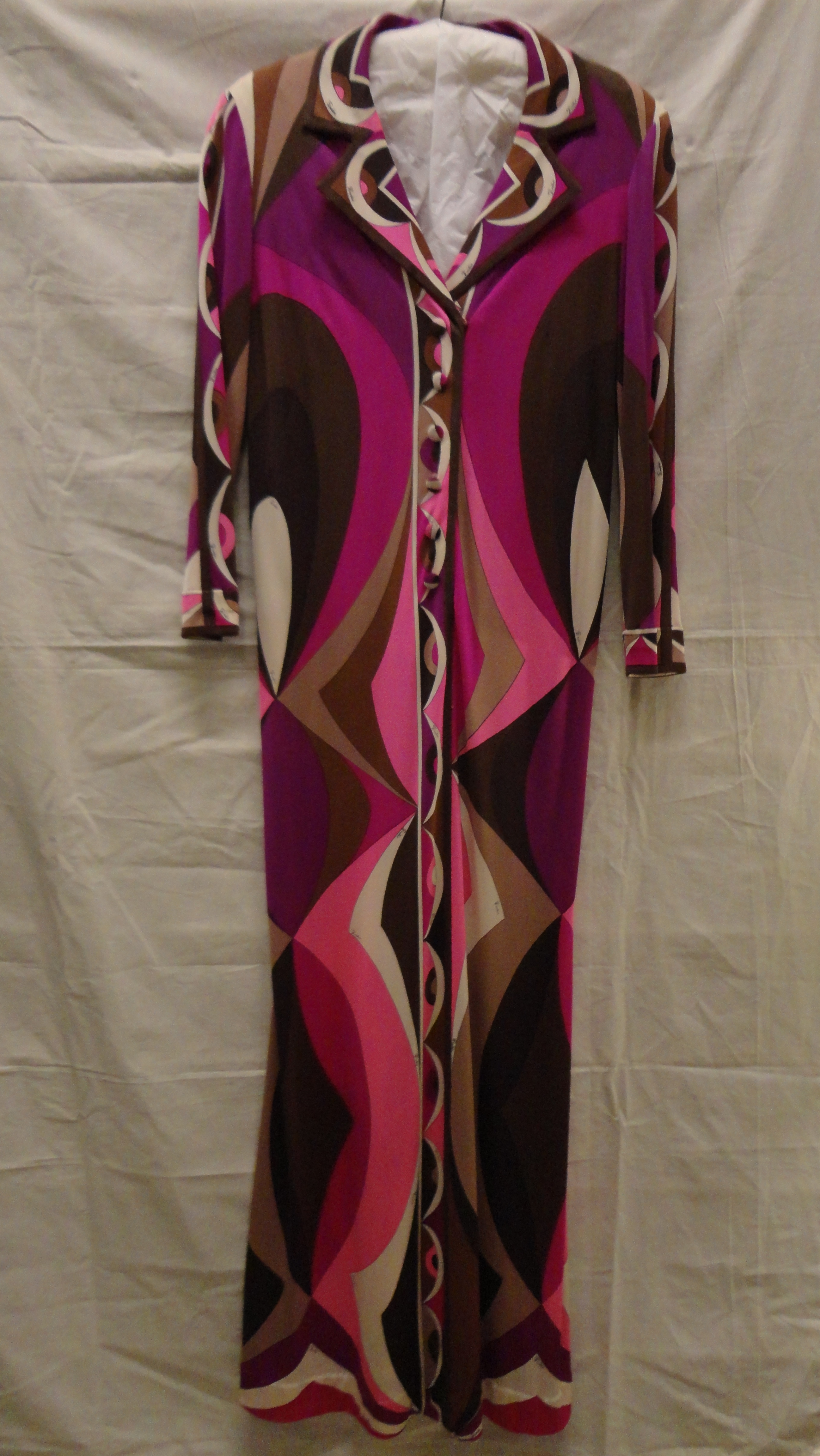 Jurk van bedrukt zijden tricot in fuchsia, paars, zw...