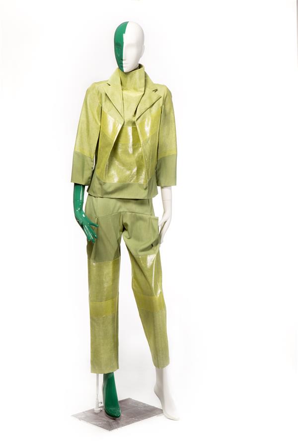 Broekpak bestaande uit jasje, broek van groene chang...