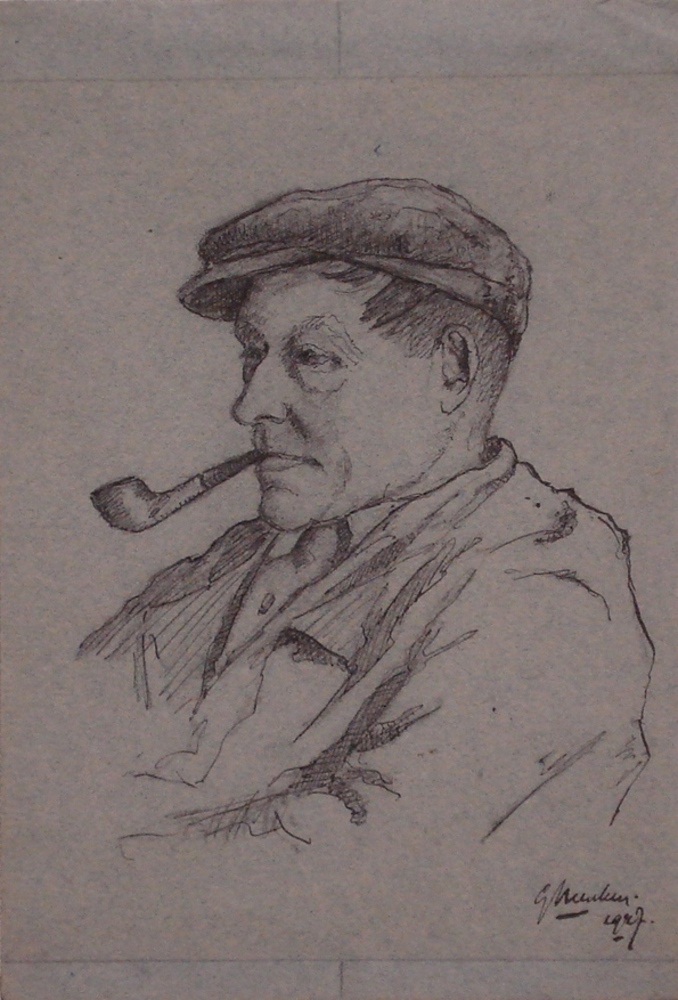 pentekening op papier "Man met pijp" gesigneerd 1947
