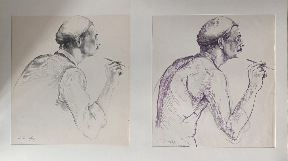 Twee studies naar een man met potlood