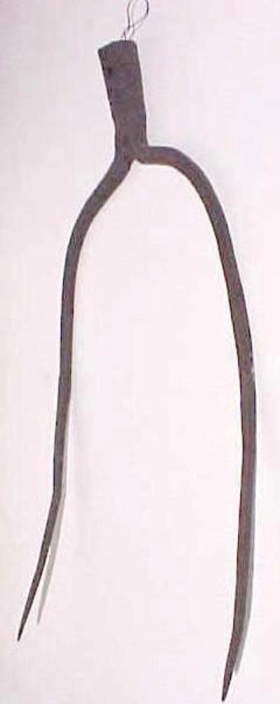 hooivork. Twee langvormige ijzeren puntige tanden zo...