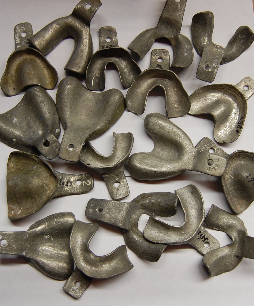 tandartsmallen voor kunstgebitten. Lood. Periode 194...