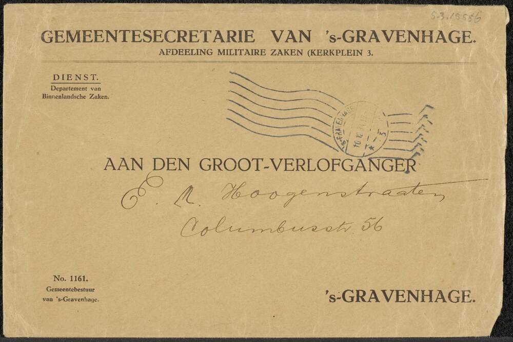 Enveloppe geadresseerd aan groot-verlofganger A.M. H...