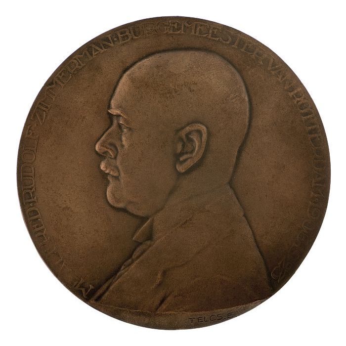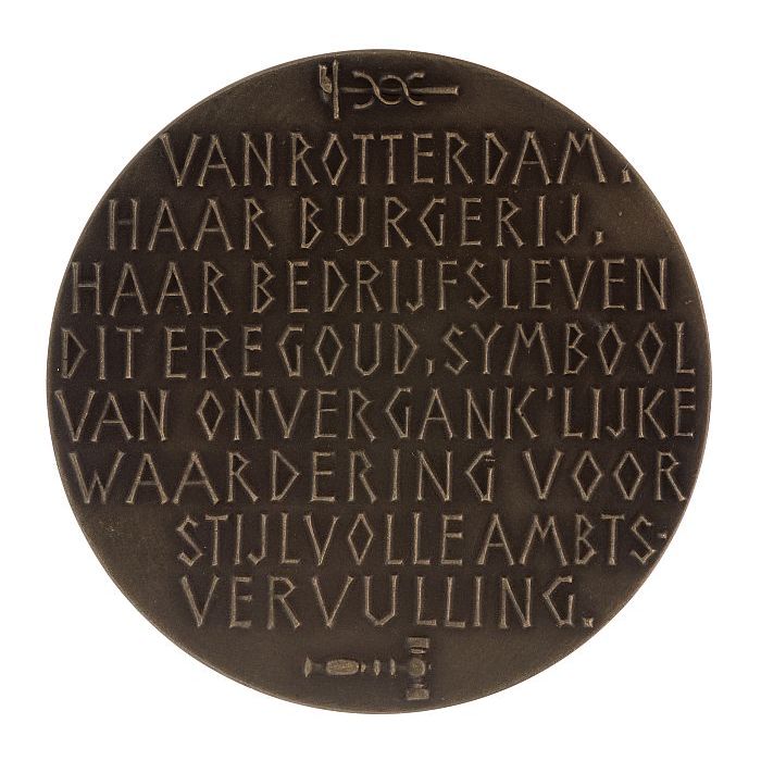 Donker bronzen penning van de Leuve van de Rotterdam...