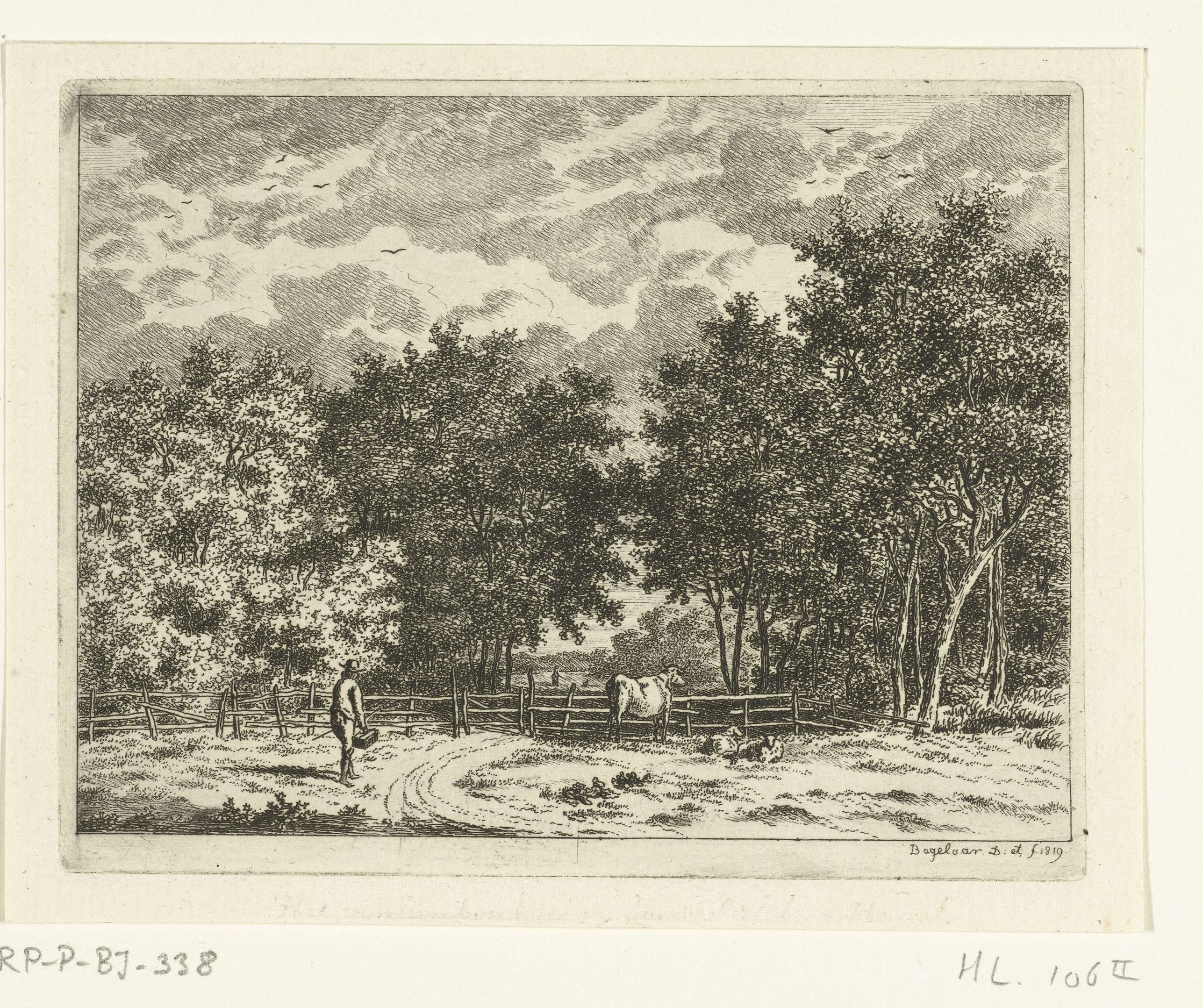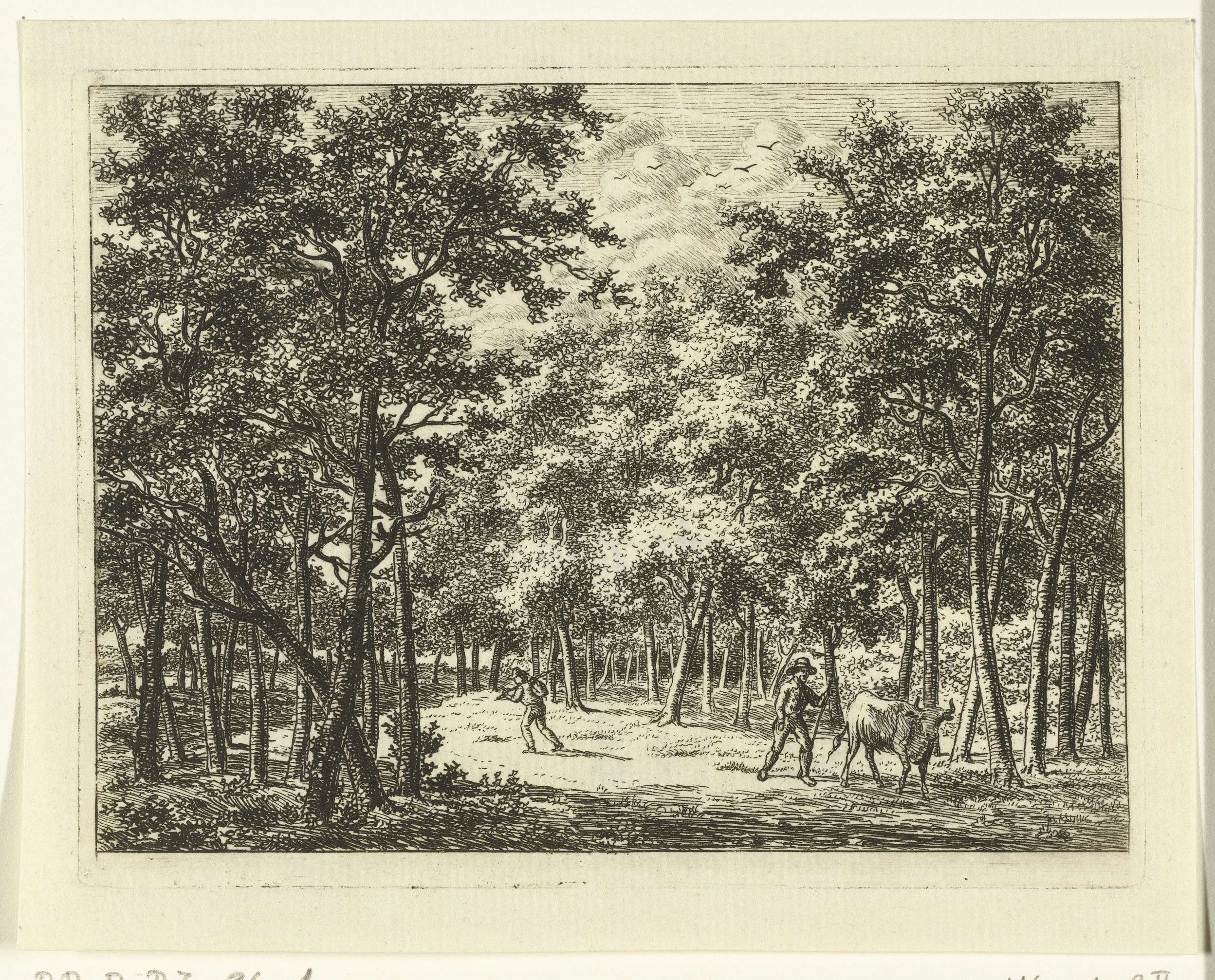 Herder met koe in het bos