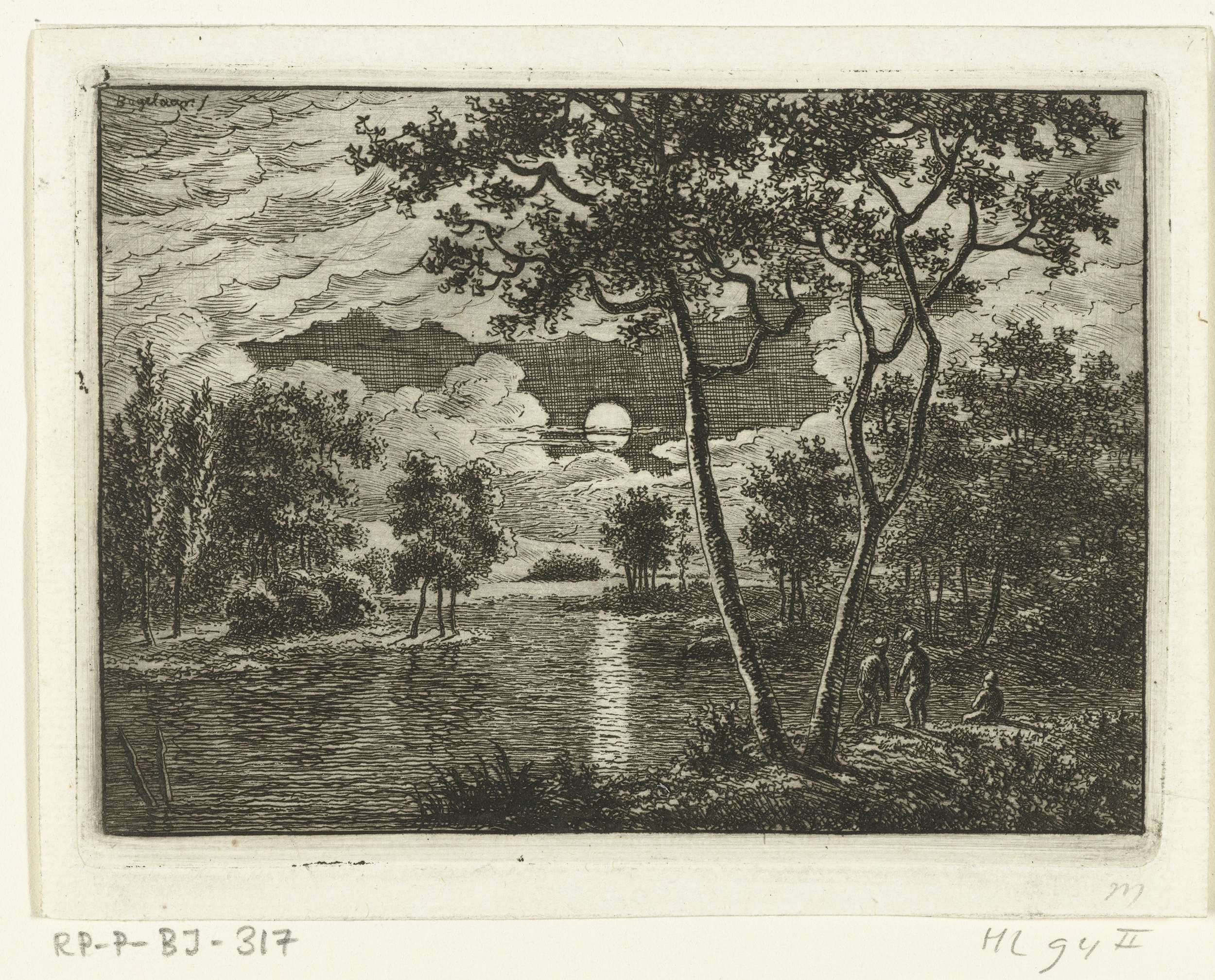 Rivierlandschap met visser en jongetje