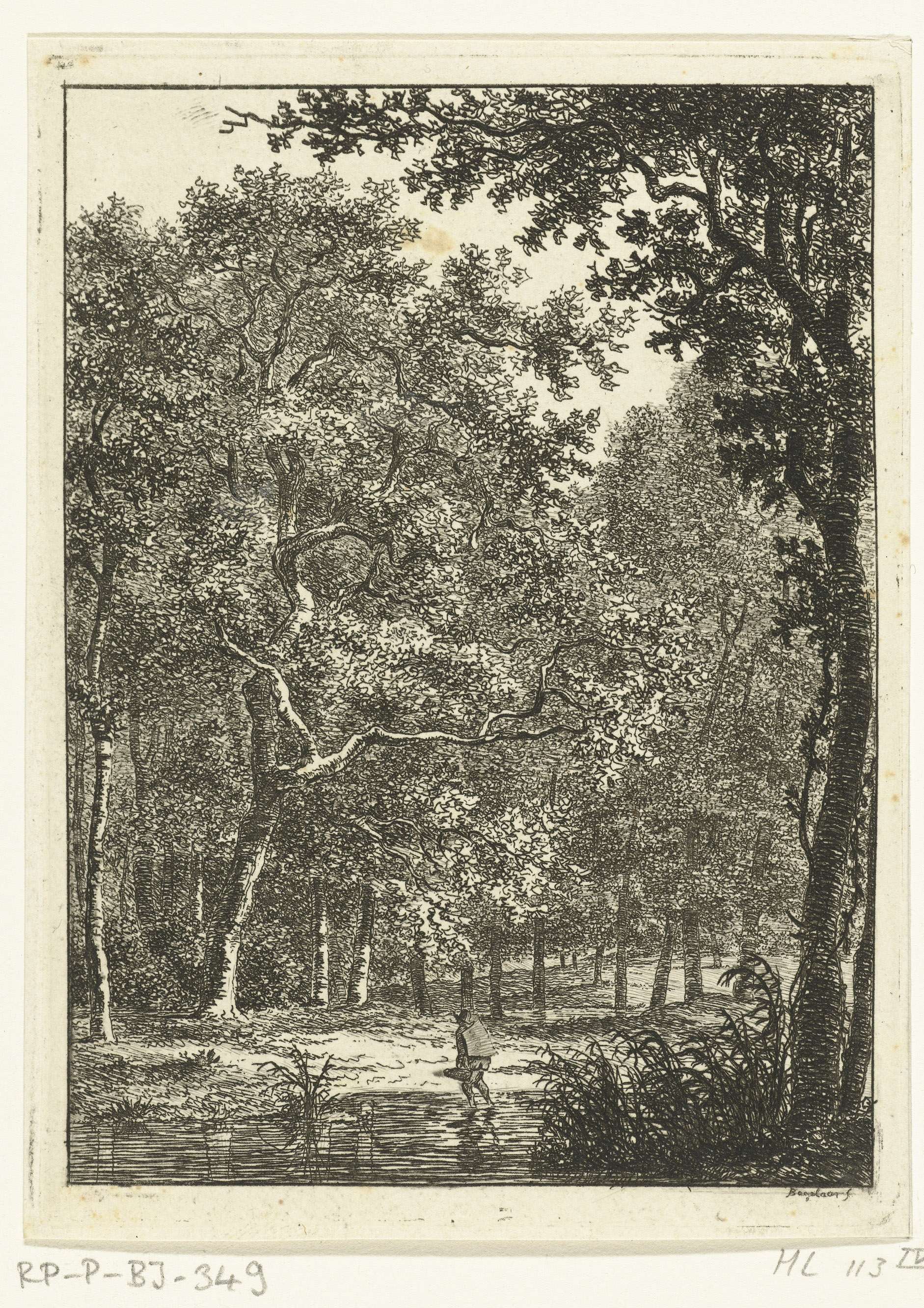 Boslandschap met man die door water waadt