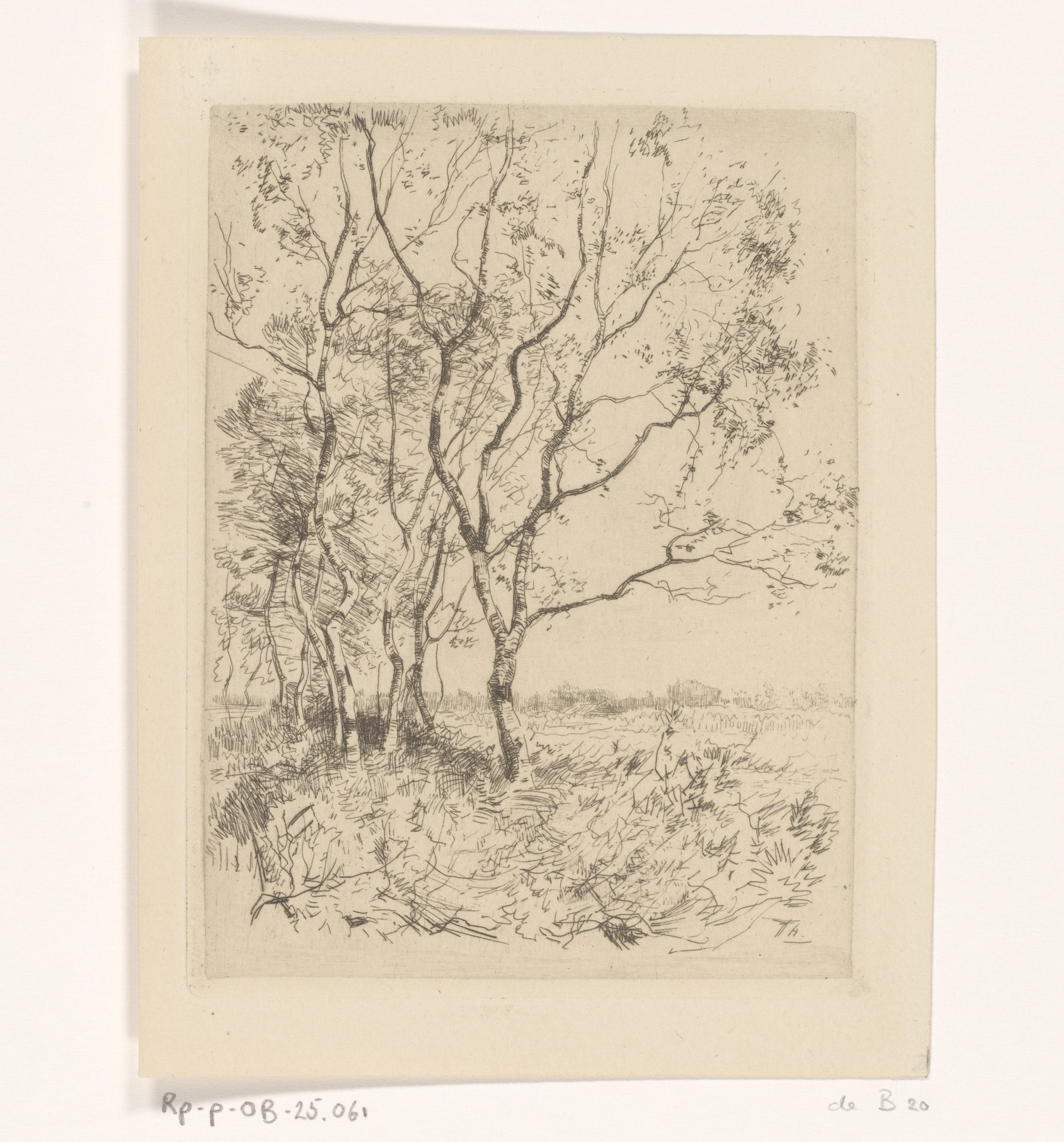 Rij berken aan een weiland
