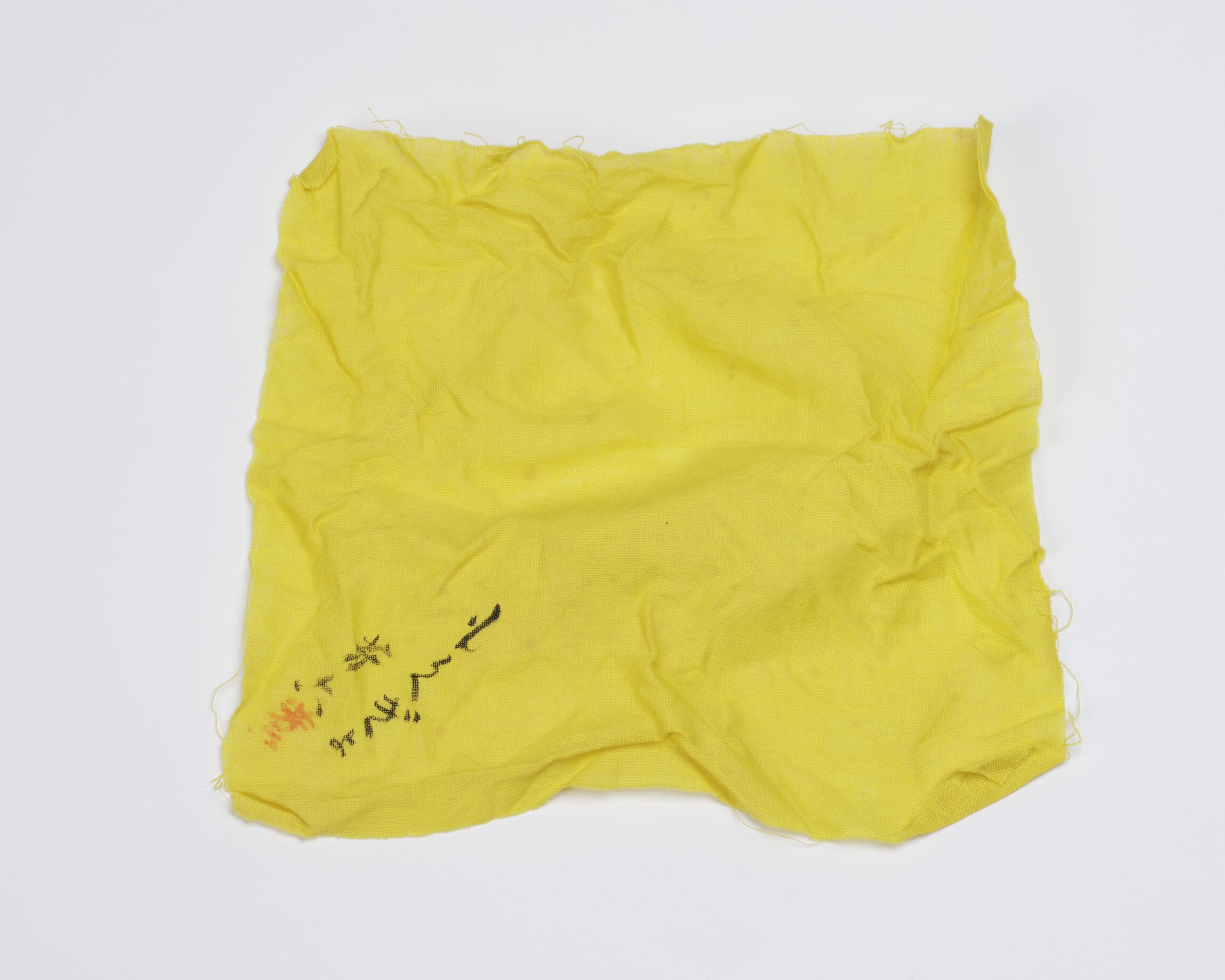 Geel textiel met tekst