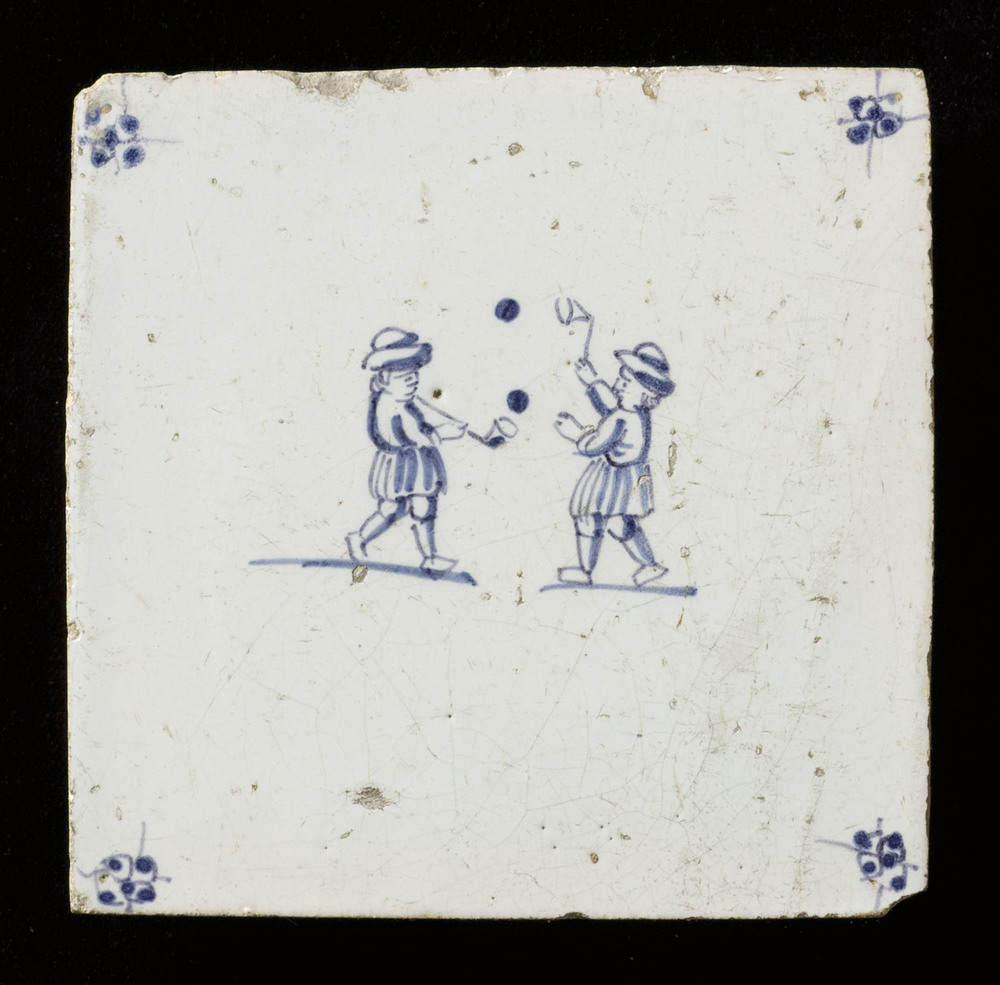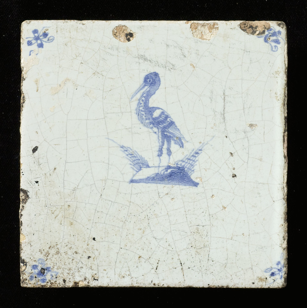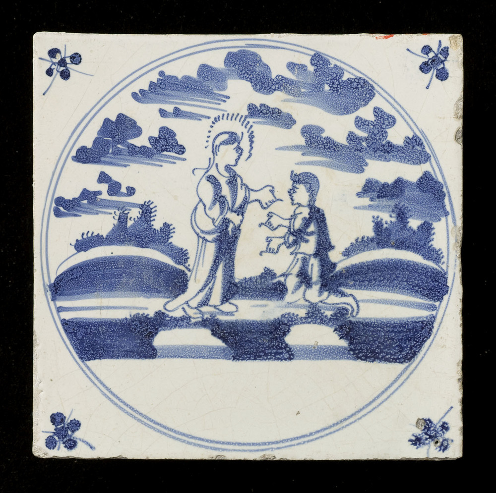 tegel van aardewerk met tinglazuur, voorstellende: h...