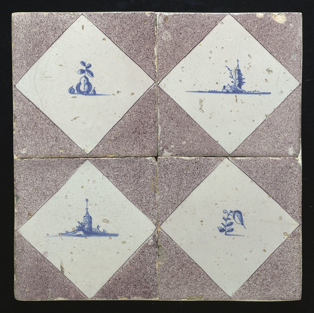 Tegelveld van keramiek, tinglazuur, voorstellende fr...