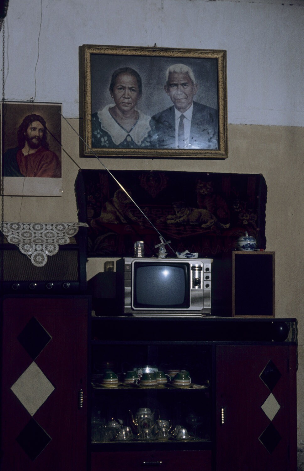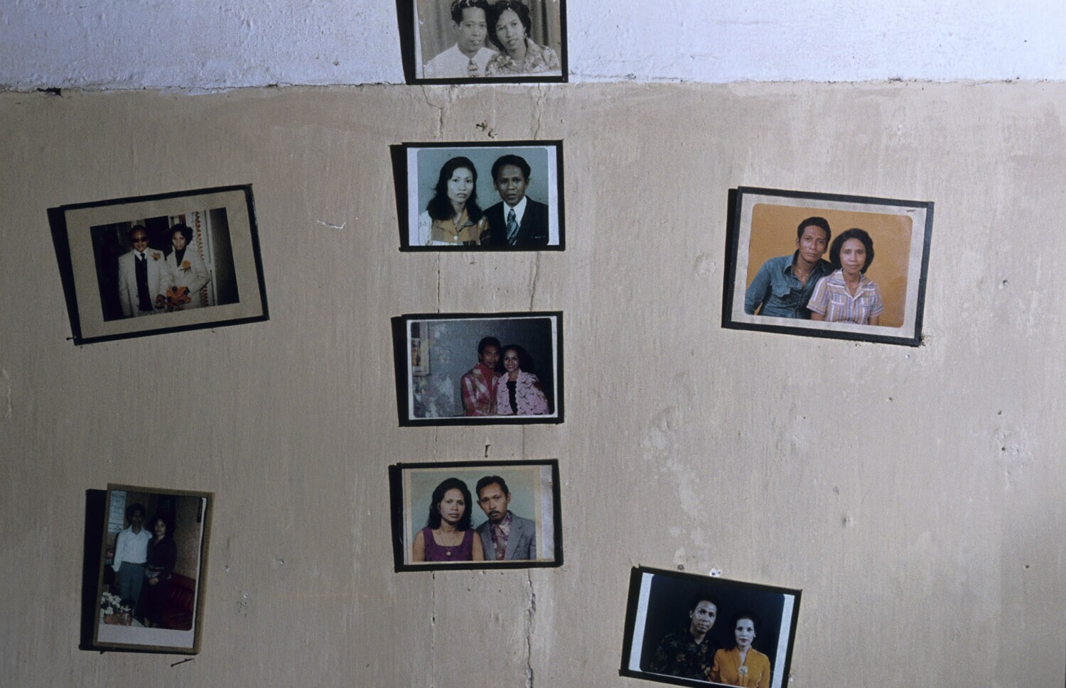 Familiefoto's aan de wand van een huis in het Ambonk...