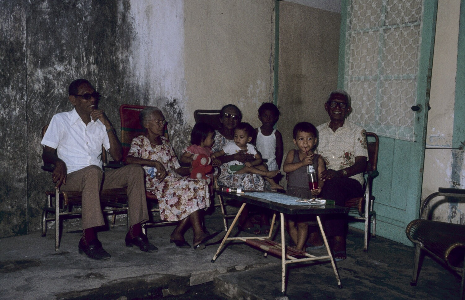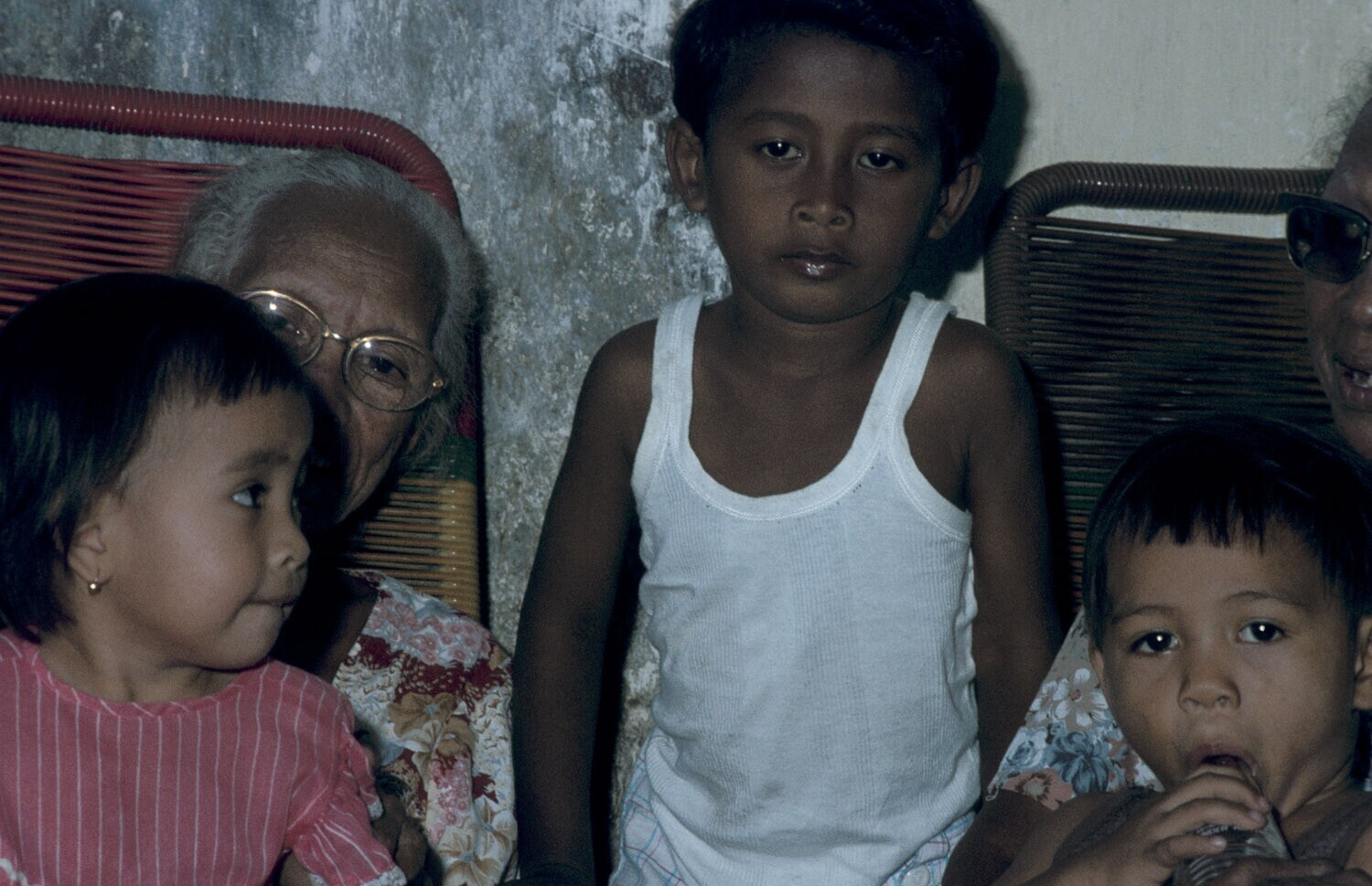 Amboneese oma met haar kleinkinderen in het Ambonkam...