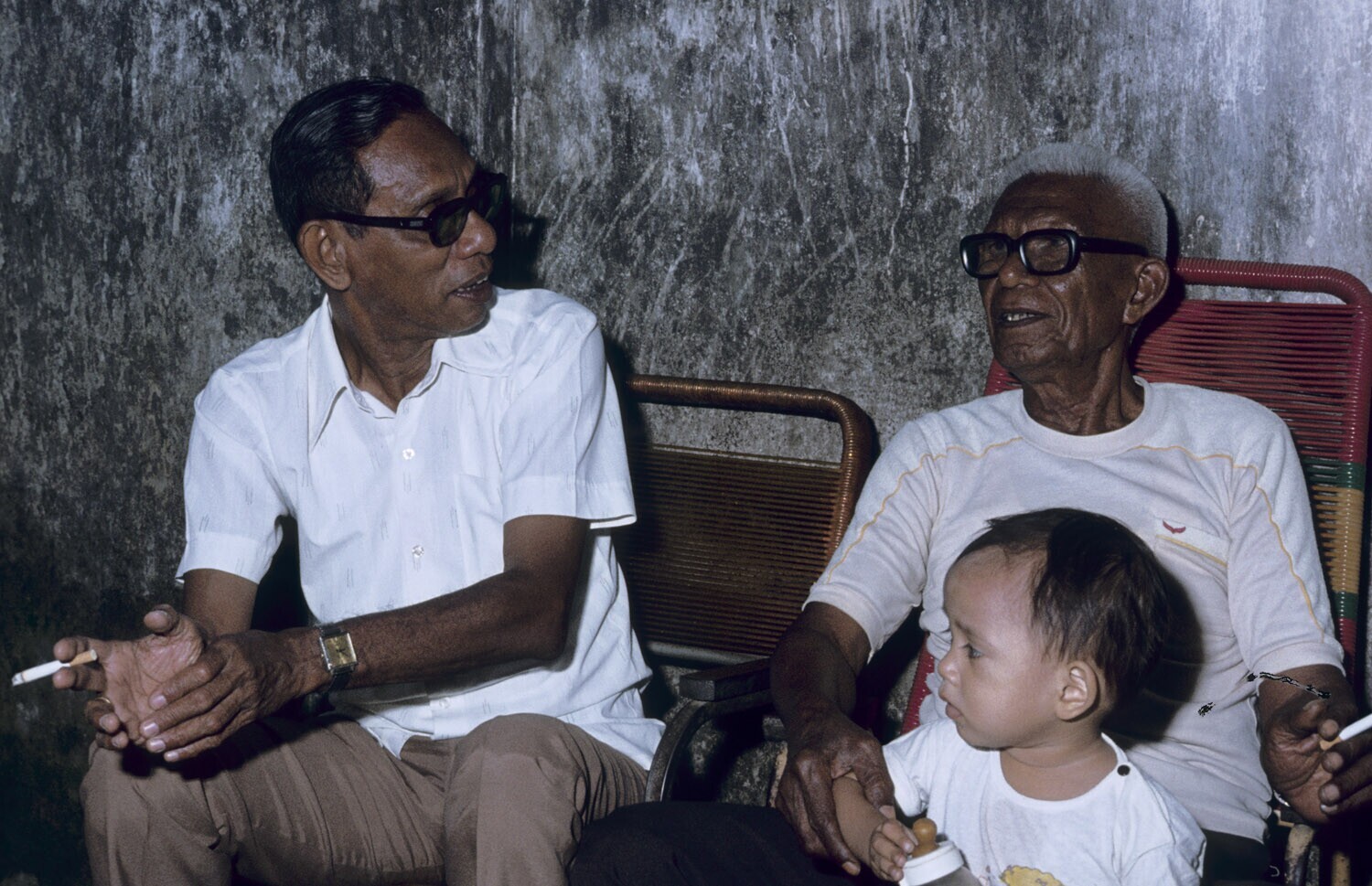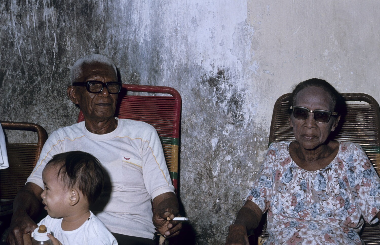 Opa en oma Nikuluju met kleinkind in het Ambonkamp i...