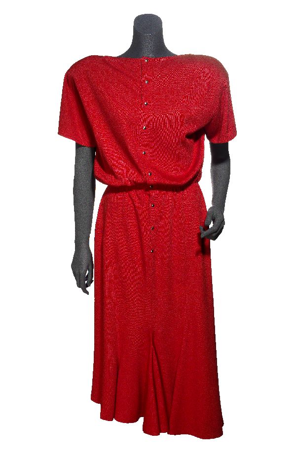 Jurk van rood katoen, halflang model met asymmetrisc...
