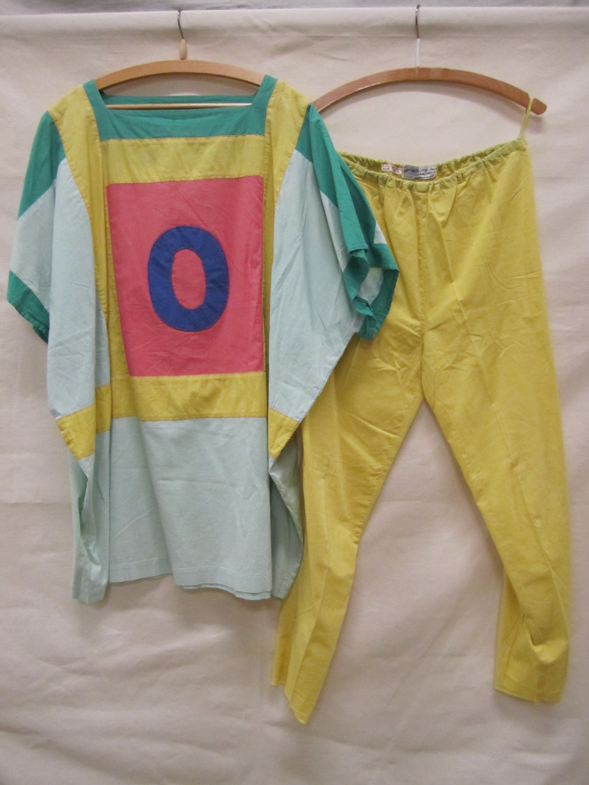 Pak bestaande uit shirt en broek van geel, roze en g...