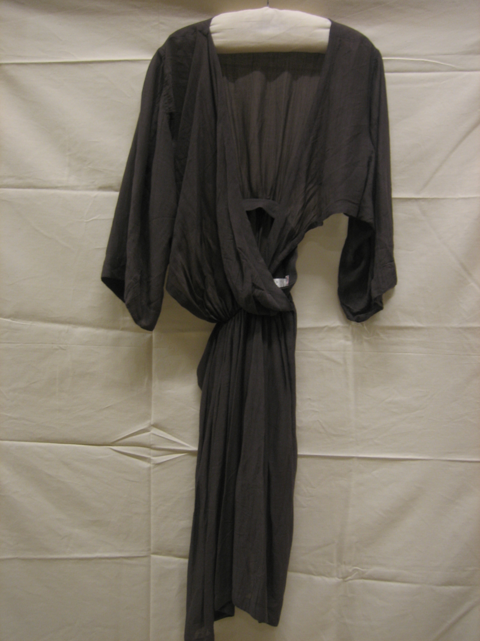 Jurk van bruin/grijs katoen/linnen. Lang model met g...