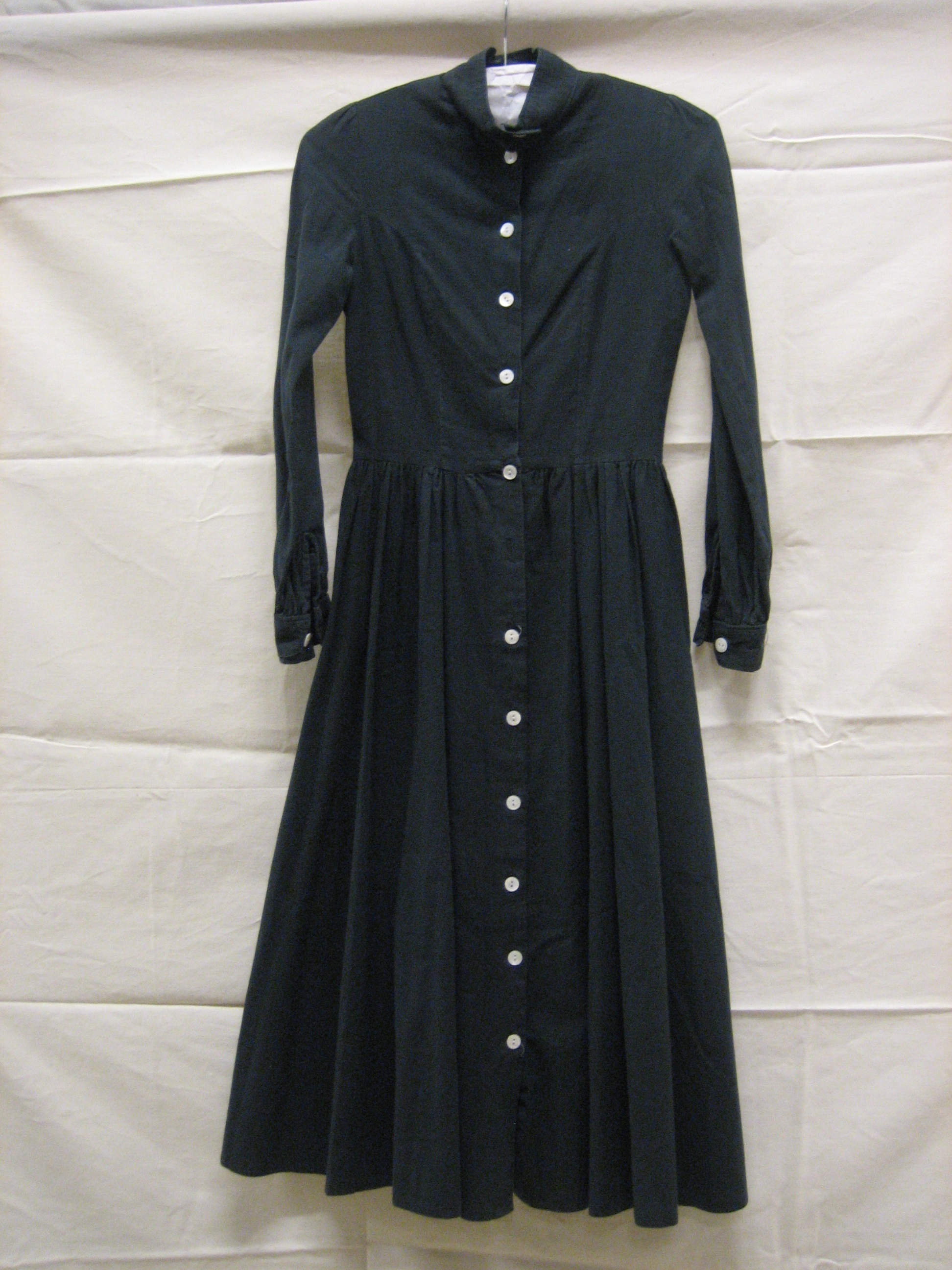 Jurk van zwart katoen, doorknoopmodel met lange mouwen