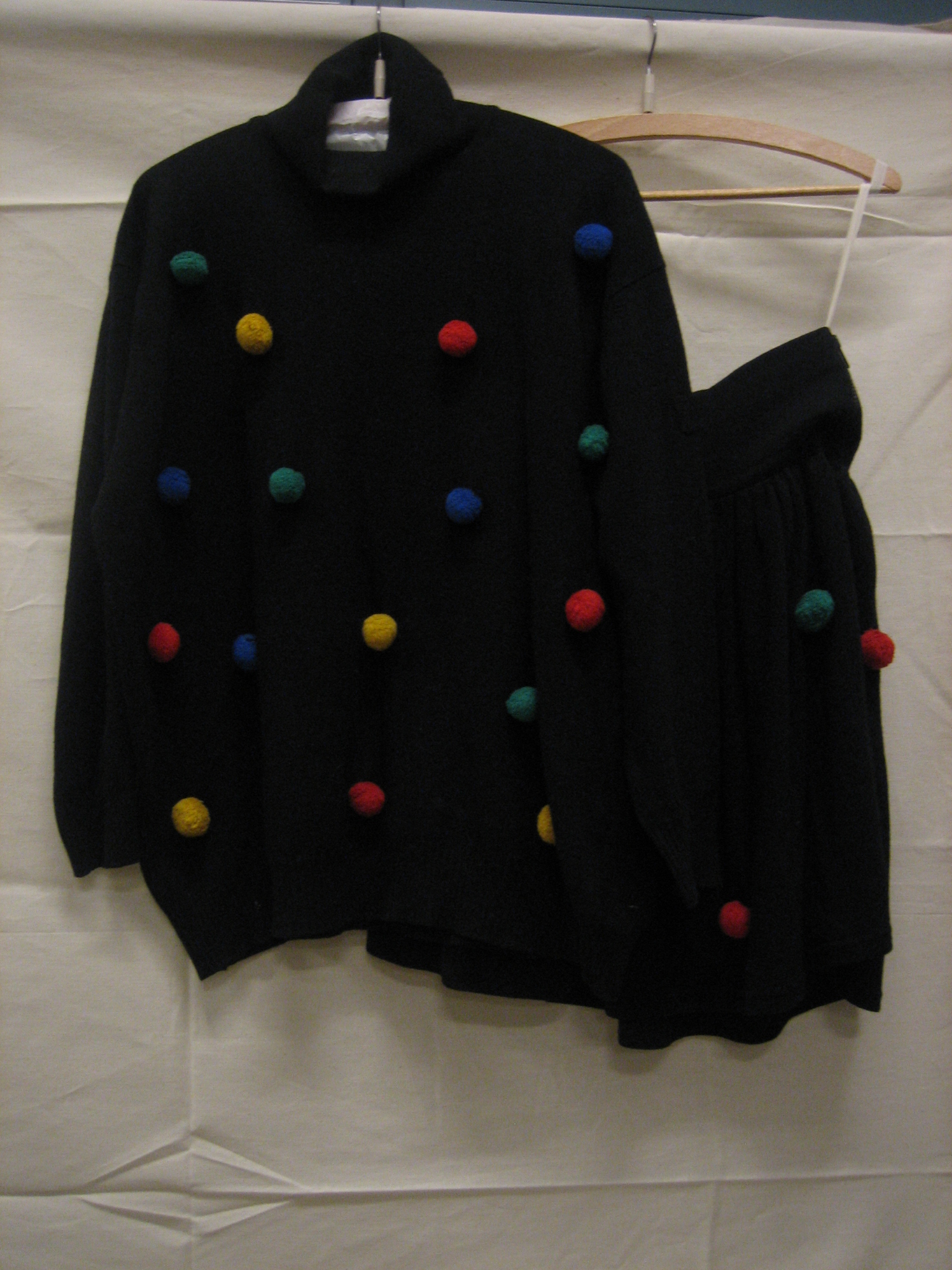 Ensemble bestaande uit trui en rok van zwarte gebrei...