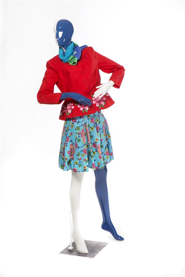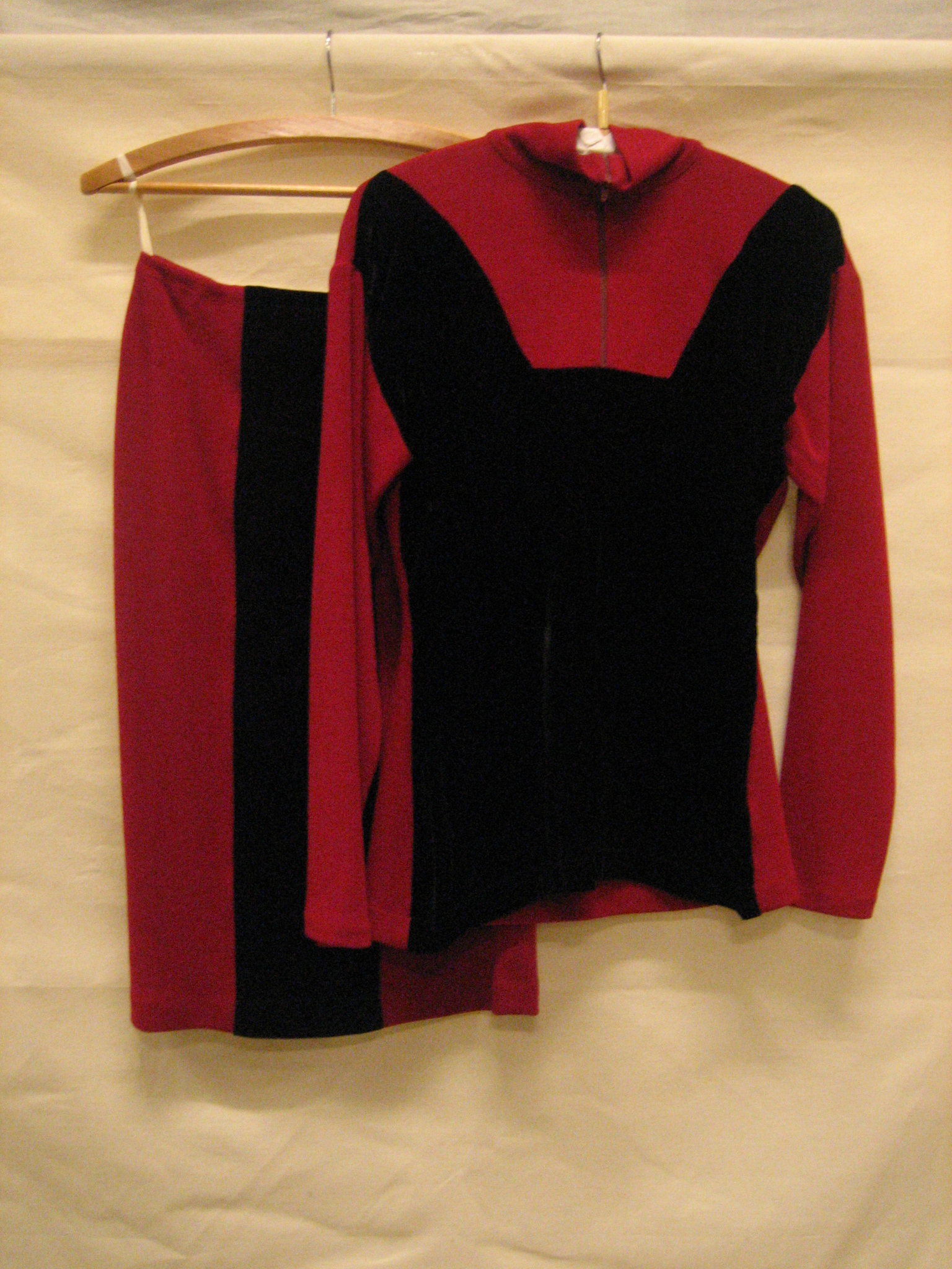 Set bestaande uit trui en rok van rood tricot en zwa...