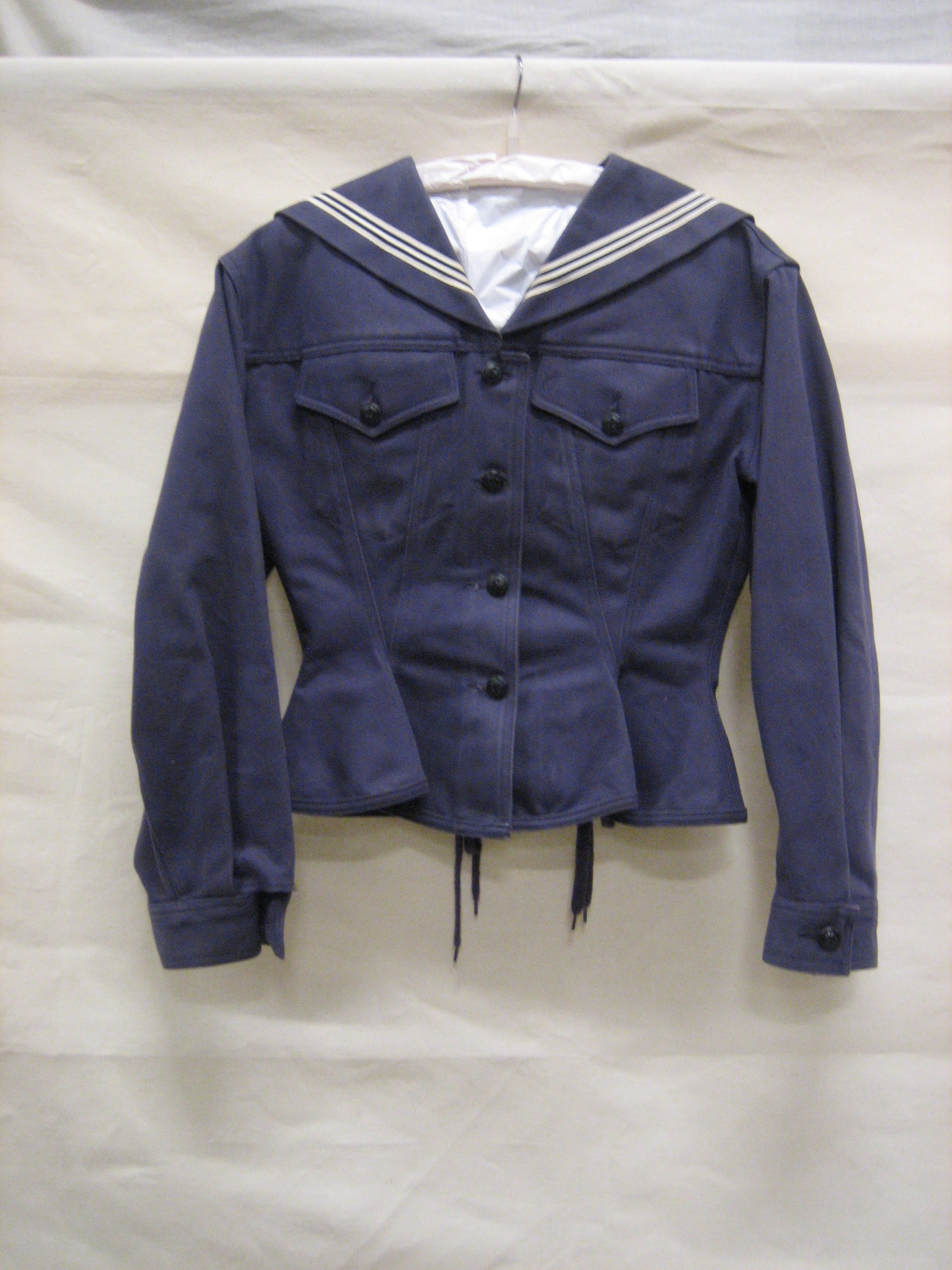 Jasje van donkerblauw katoen met matrozenkraag, 2 ri...