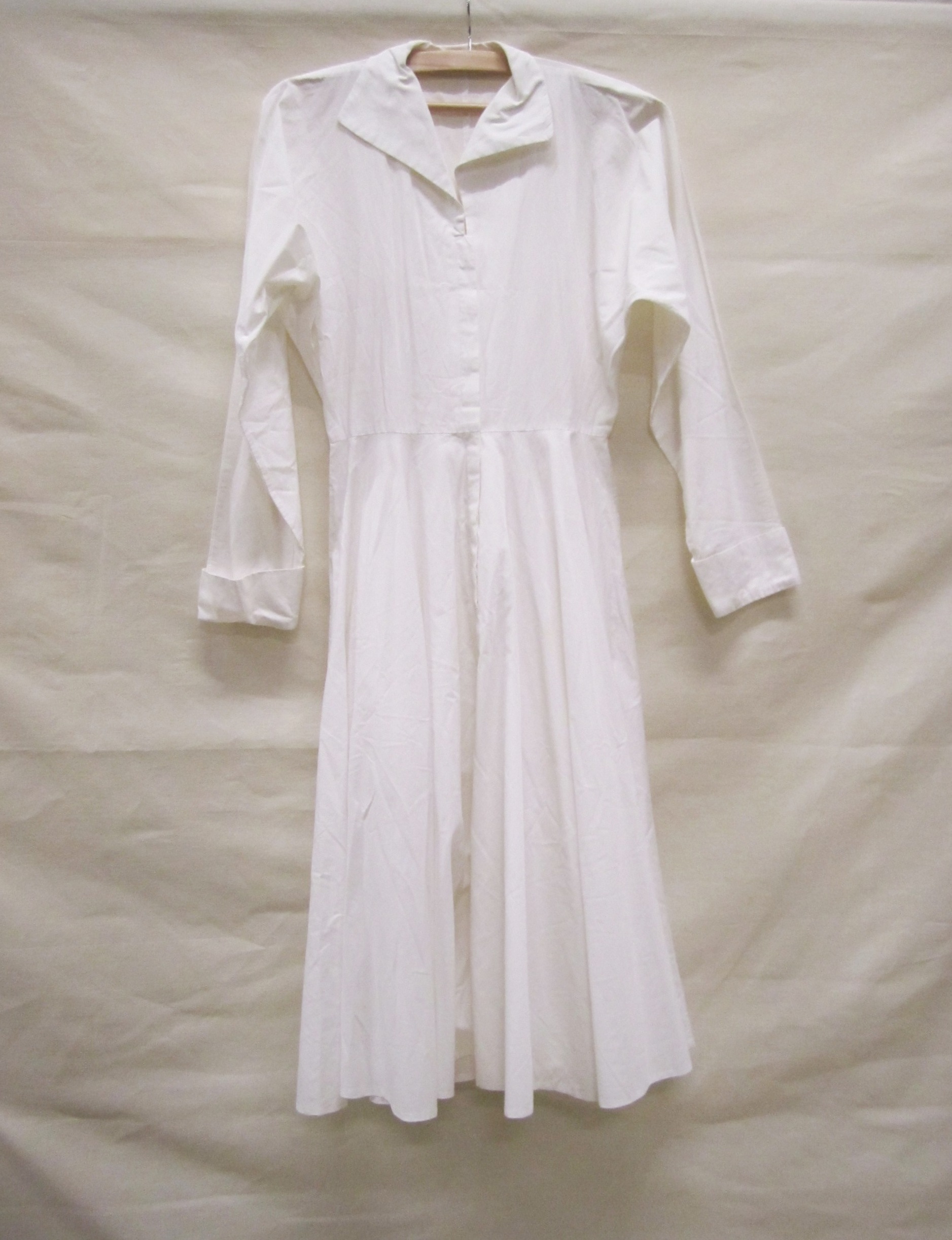 Jurk van wit katoen, lang model met lange mouwen en ...