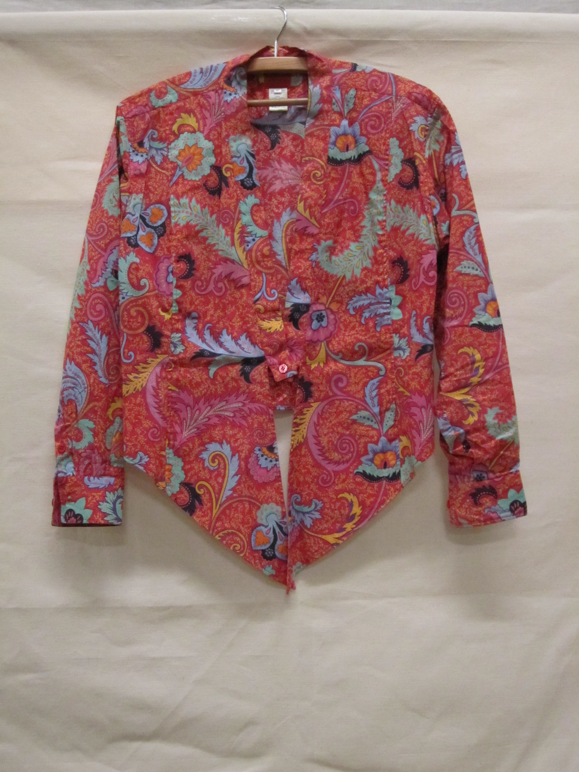 Jasje van rood katoen bedrukt met florale motieven, ...