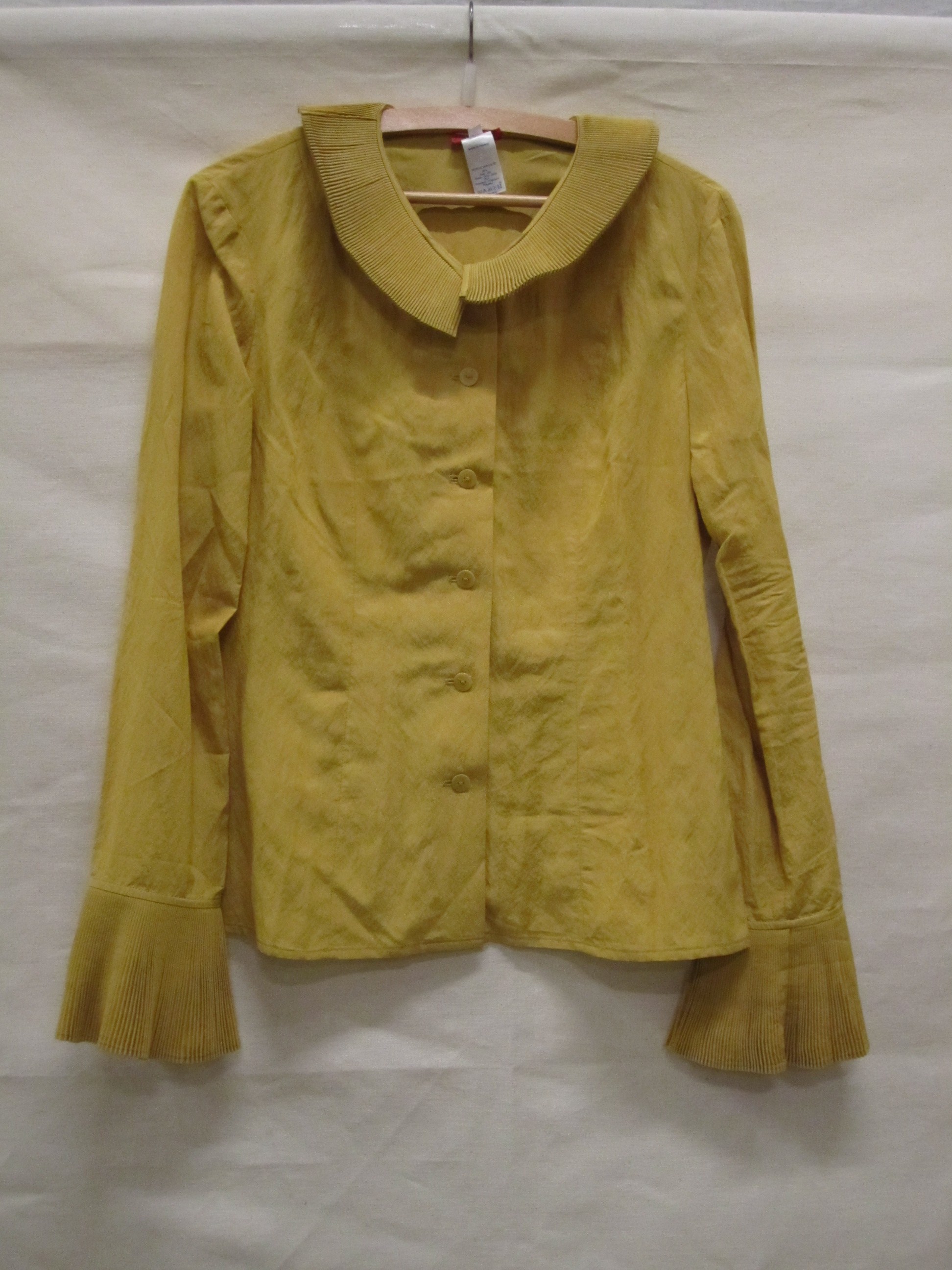 Blouse van okergele zijden mengvezel, getailleerd mo...