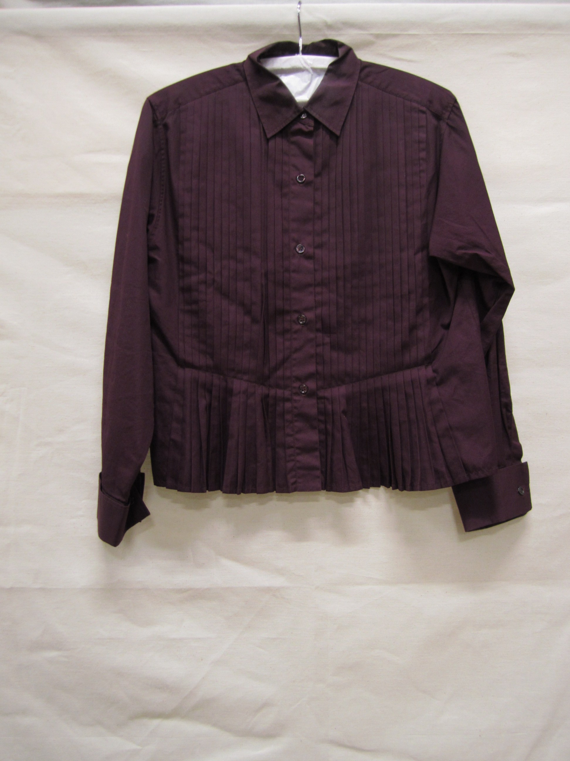 Blouse van auberginekleurig katoen met geplisseerd v...