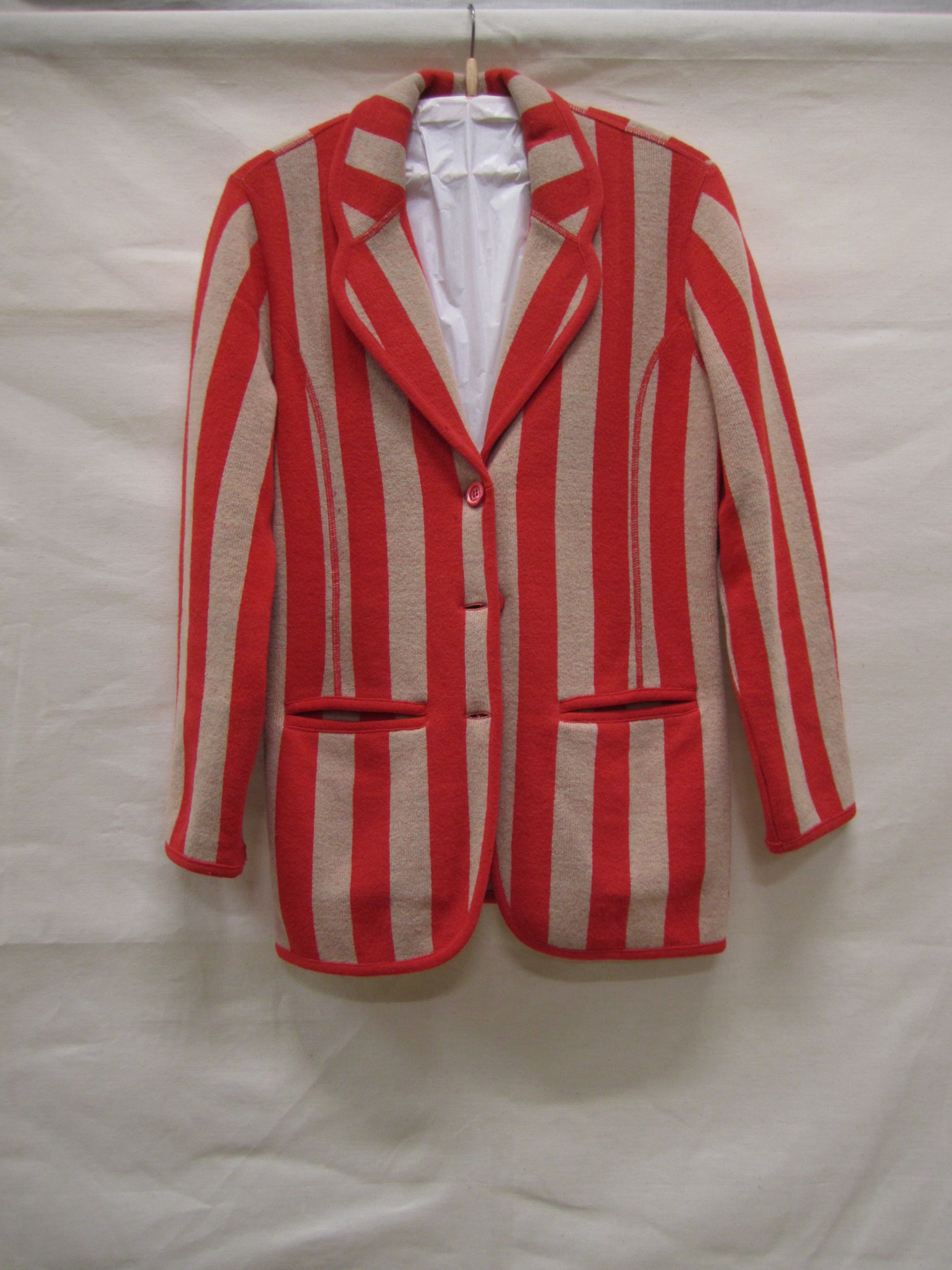Jasje, model blazer, van beige met rode wollen trico...