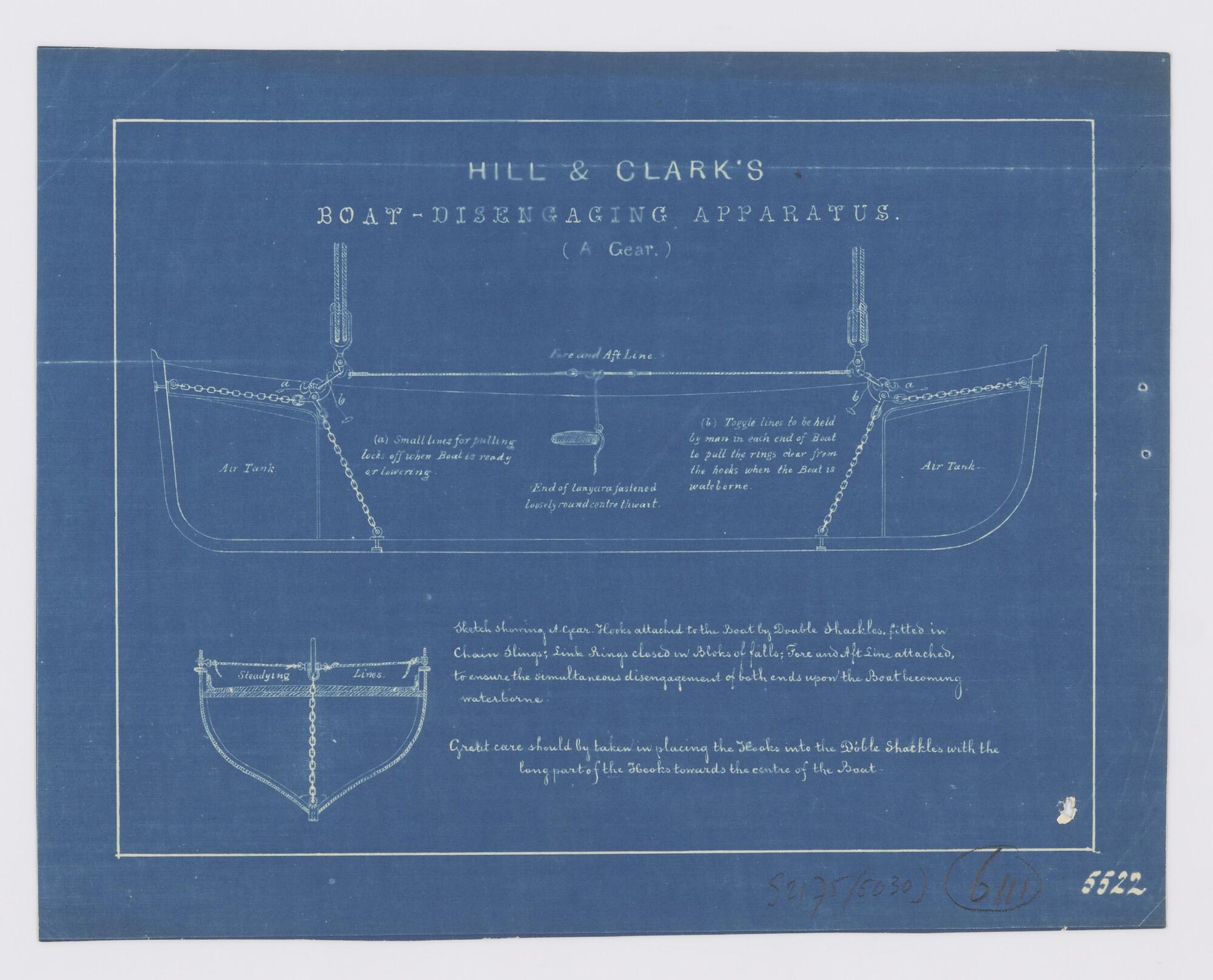 Langsdoorsnede van een sloep met verbeterde hijsinri...