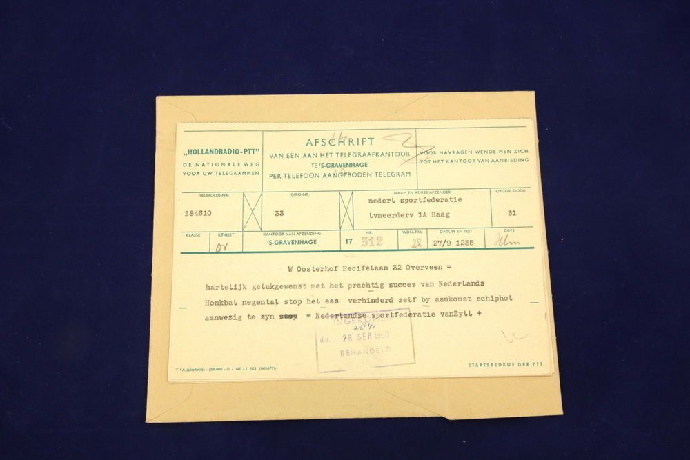 Vijf telegrammen verstuurd door NSF in de jaren '60 ...