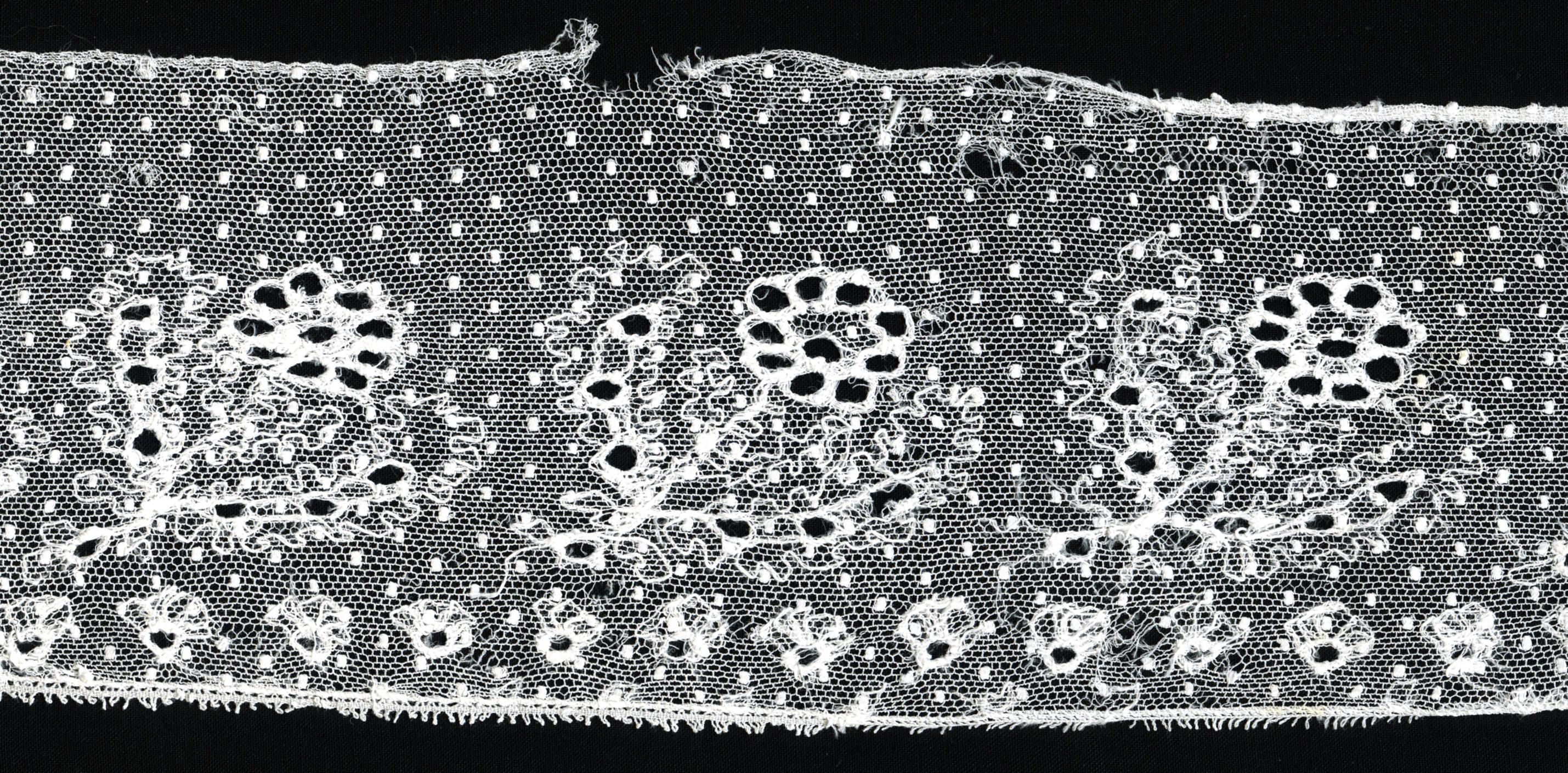 Versierde tule, afkomstig van een 'floddermuts', Mak...
