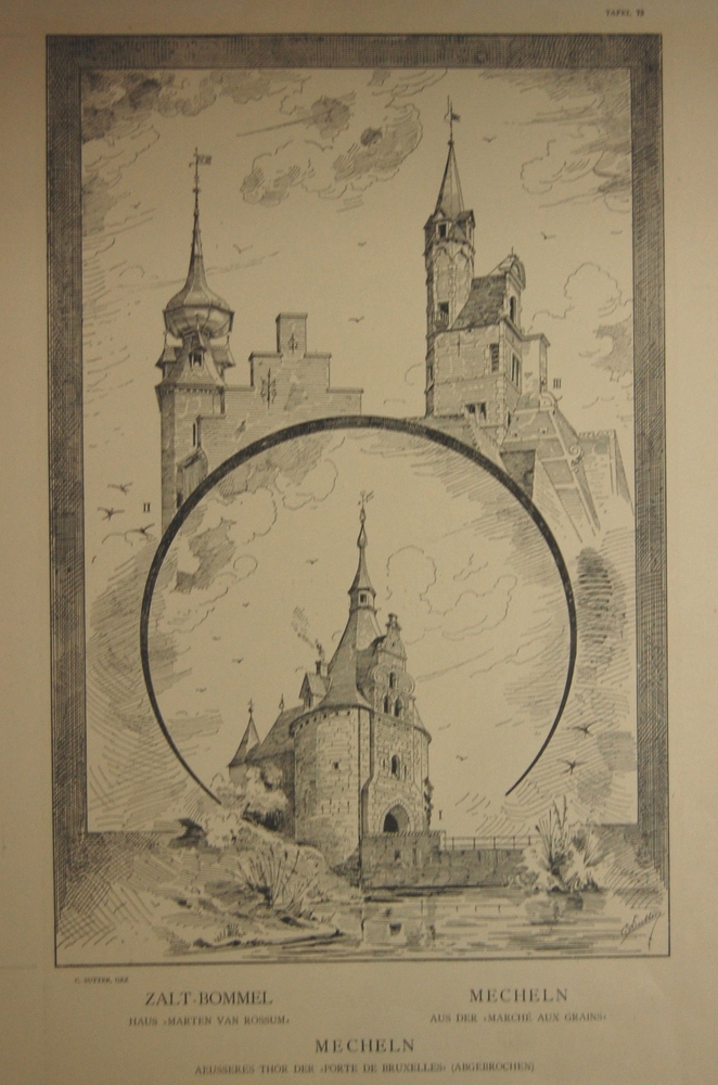Drie delen van gebouwen waarvan één het Huis Maarten...