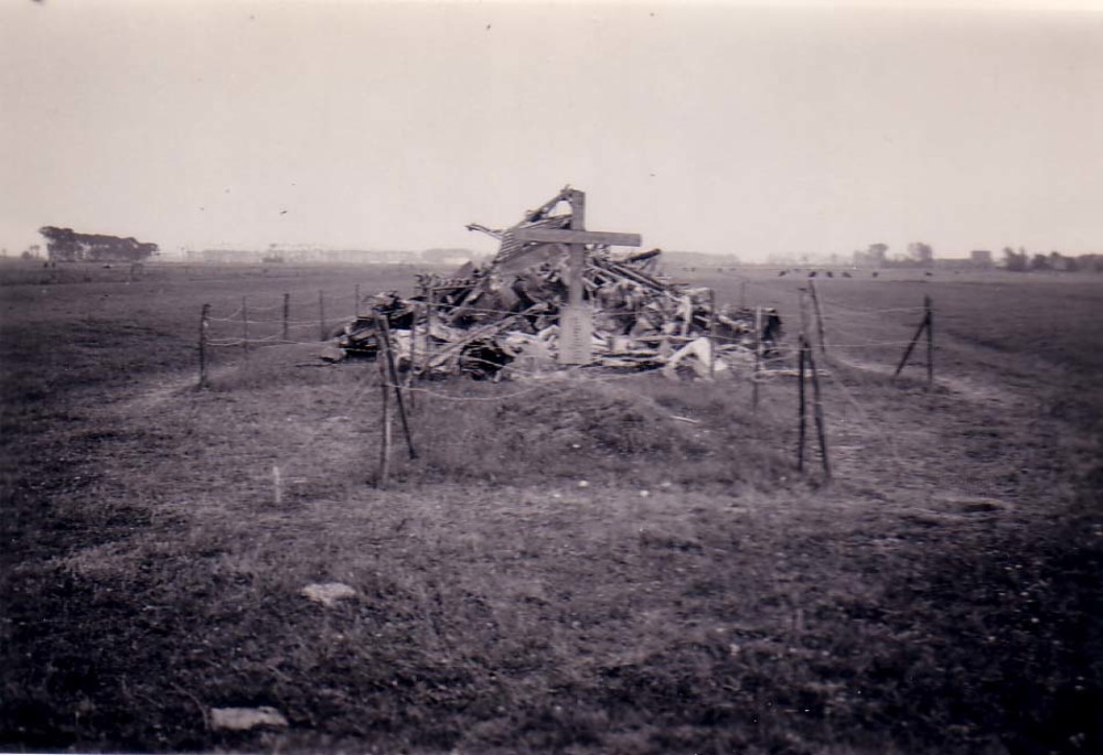 Brokstukken van een neergestort vliegtuig (mei 1940)