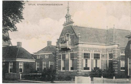 Briefkaart met afbeelding Spaarbankgebouw Spijk (Gr.).