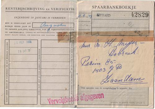 Spaarbankboekje. Boekje Rijkspostspaarbank kantoor...