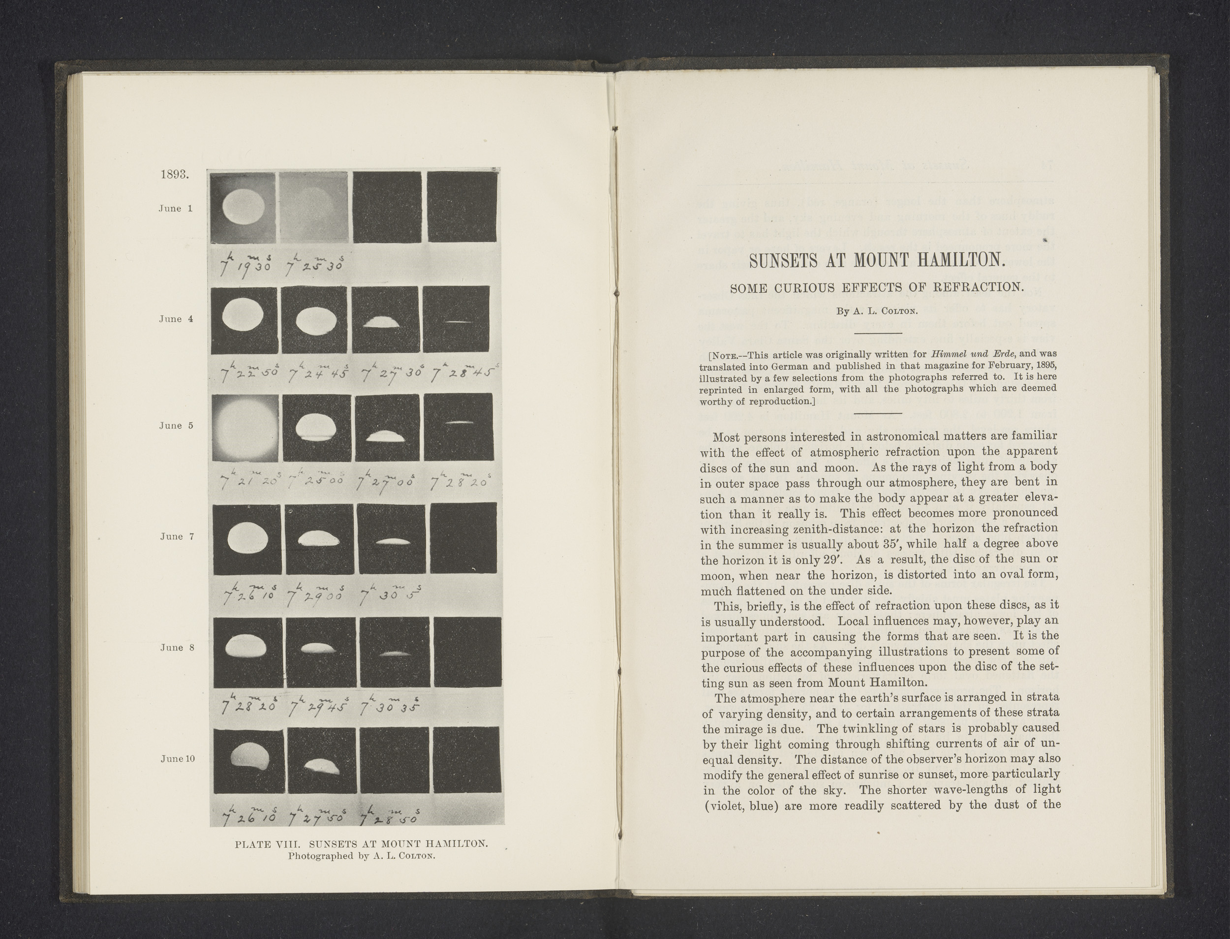 Meteors and sunsets observed by the astronomers of t...