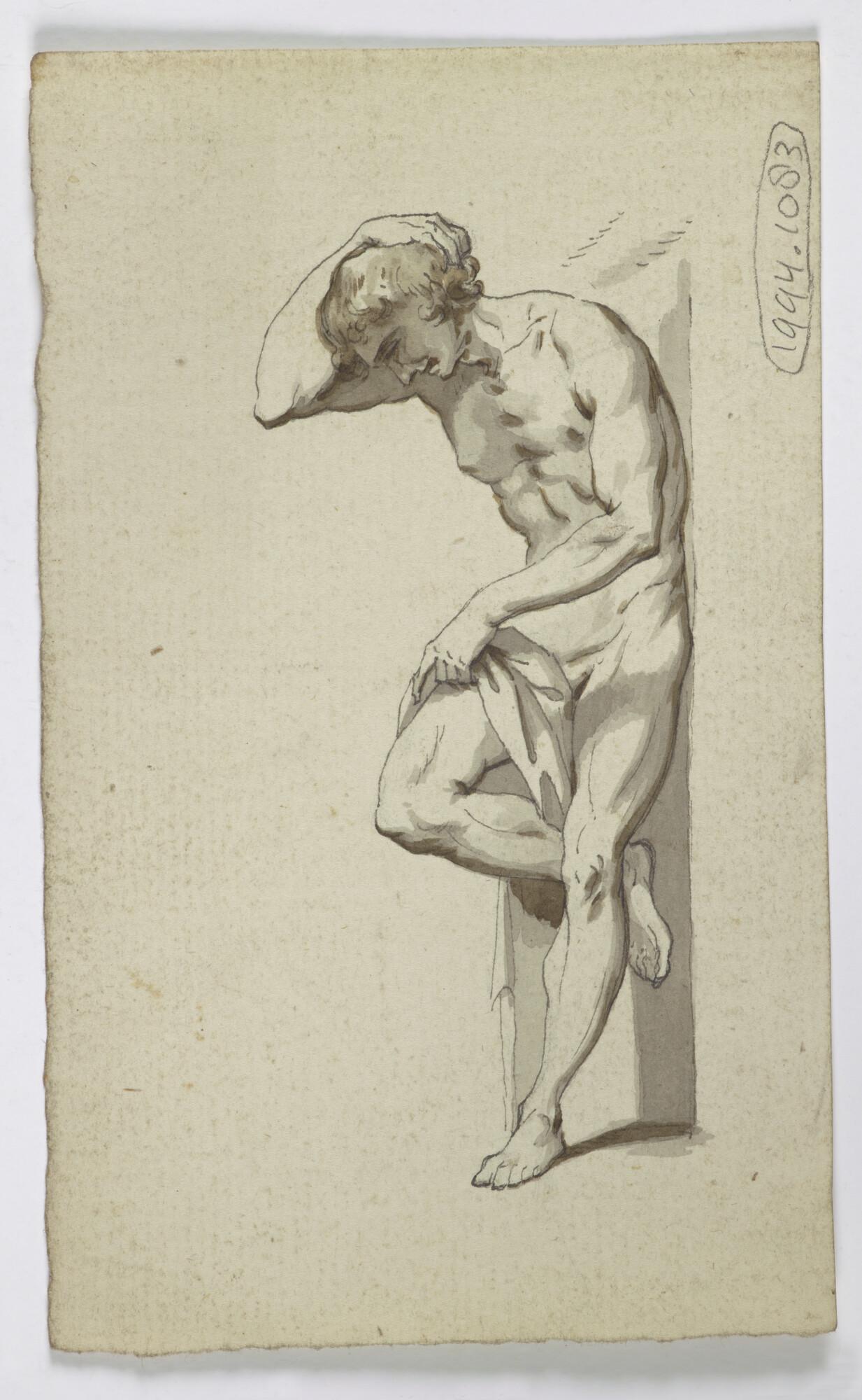 Tekening van een borstbeeld van een mannenfiguur met...