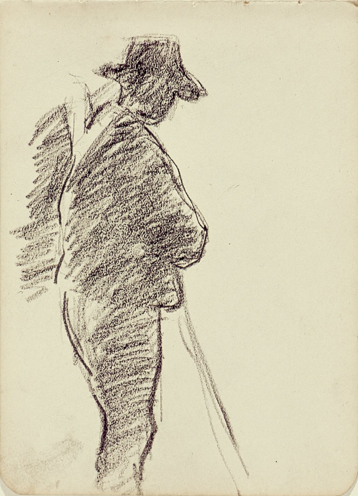 Man met stok, van achteren gezien