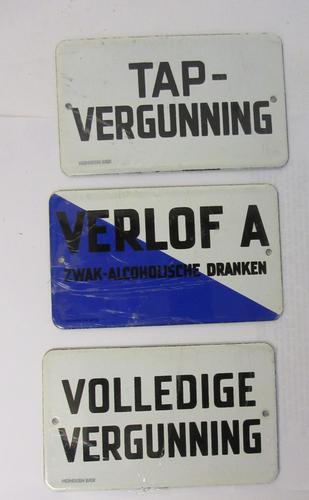 Set van drie emaille borden tapvergunning volledige ...