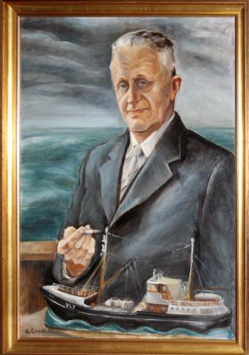 Olieverf schilderij. Stoomlogger VL190 Koningin Wilh...