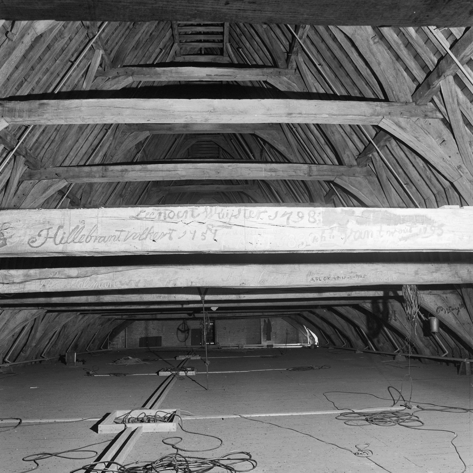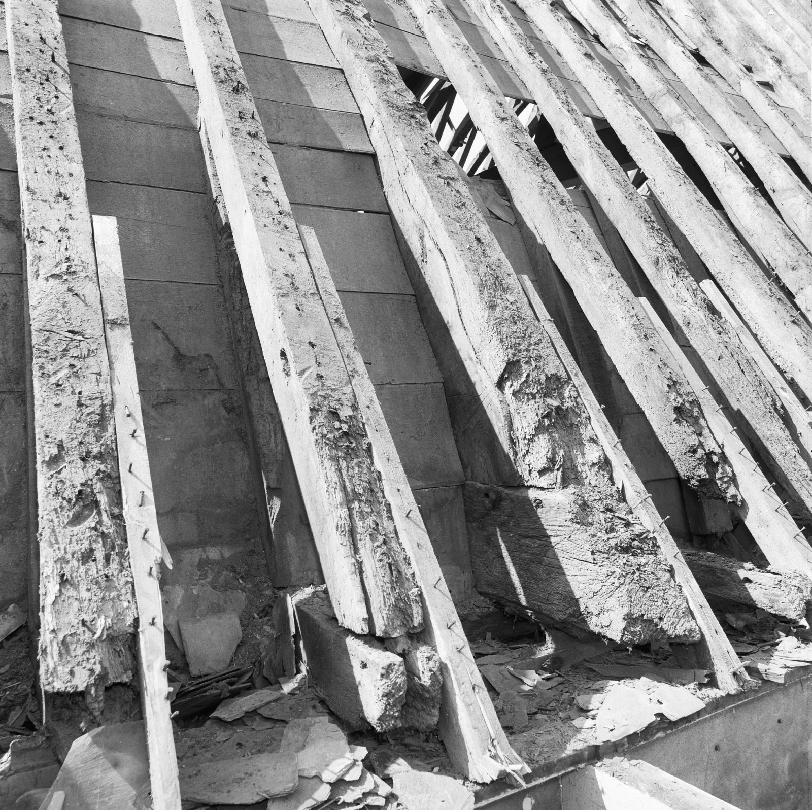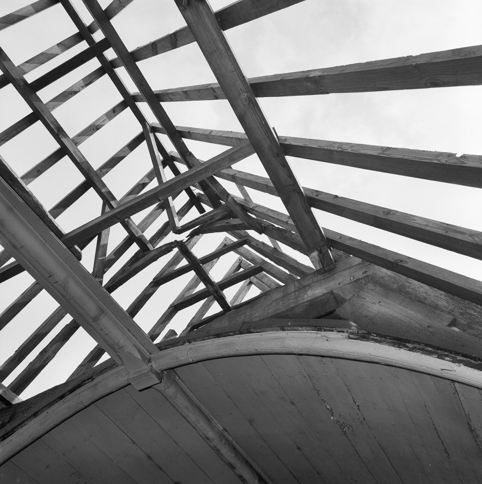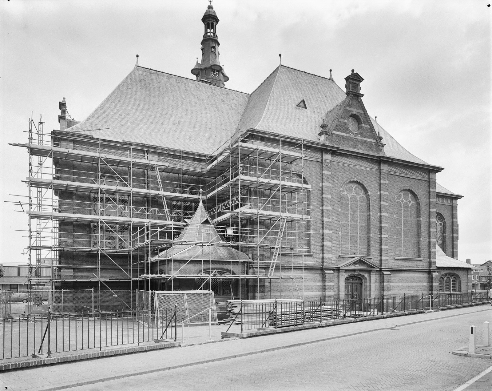 Kerk in de steigers tijdens restauratie: kapconstructie