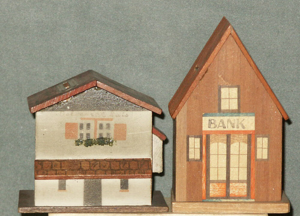 Spaarpotten van beschilderd hout.