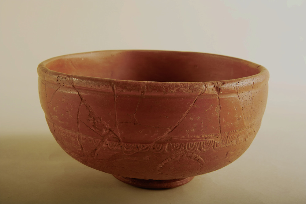 Voetschaal van terra sigillata met versiering