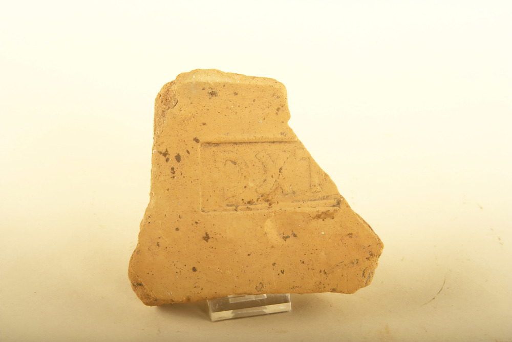 Fragment van een daktegula van baksteen met stempel
