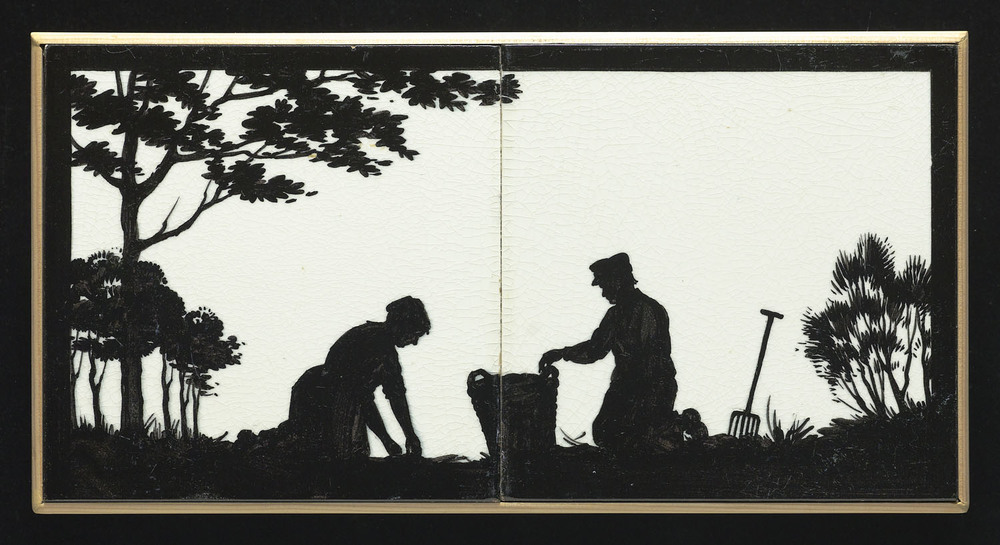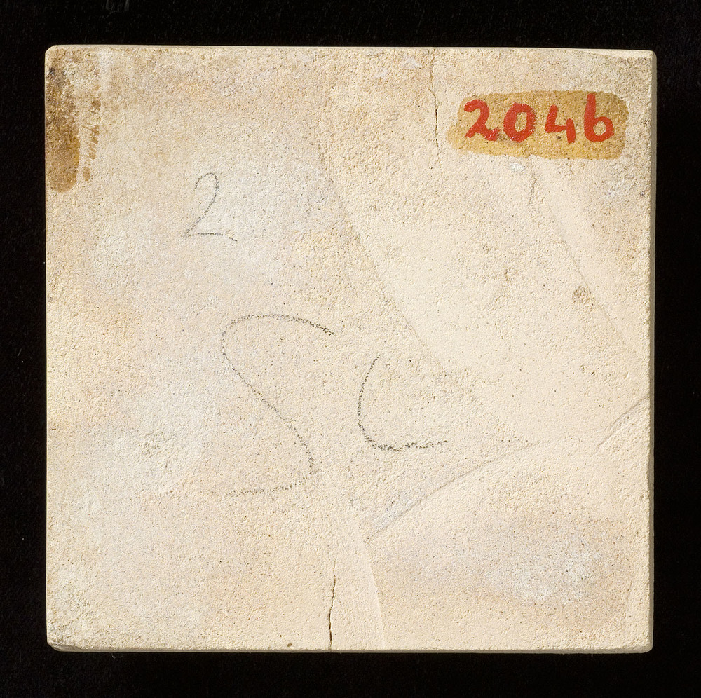 Tegel in tinglazuur, voorstellende bestedingstegel, ...