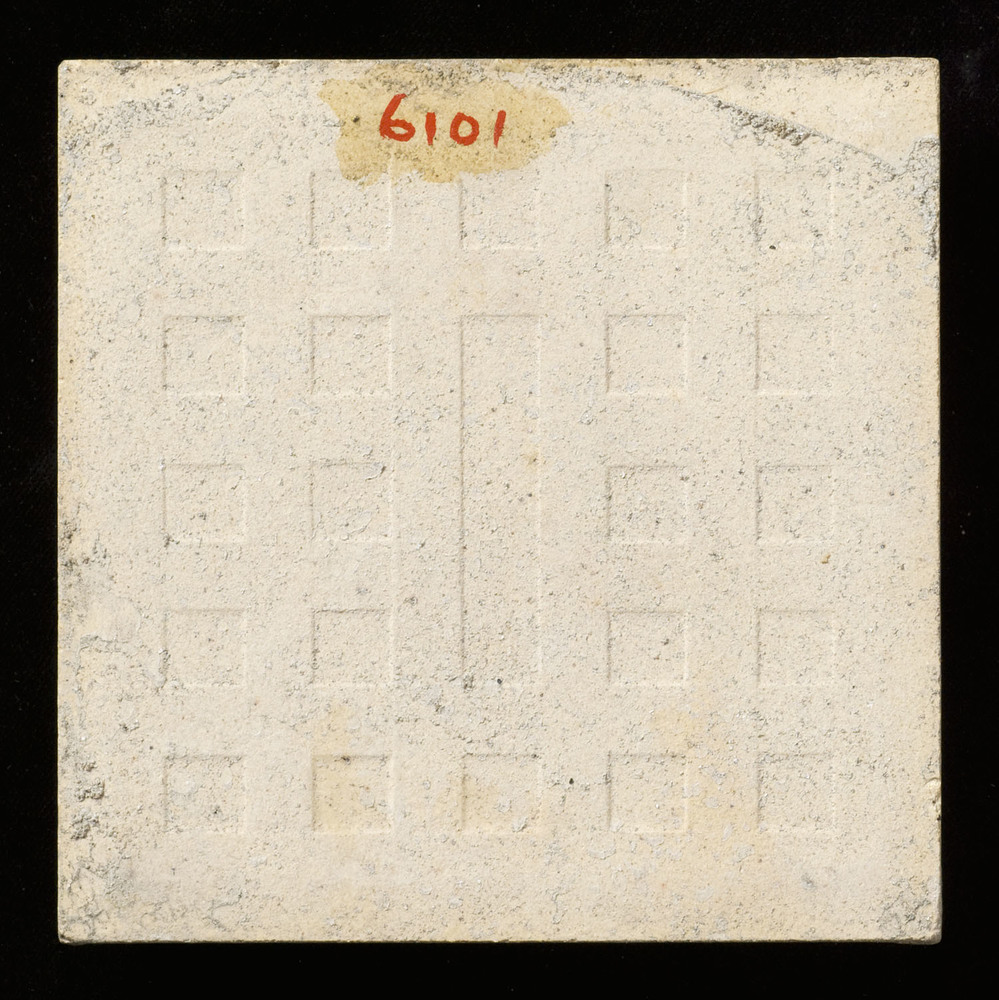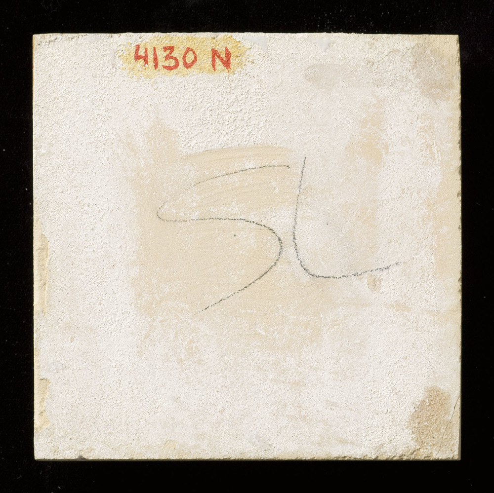 Tegel in onderglazuur, voorstellende drijfhamer, ver...