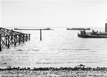 Aanvoer van zand voor dijkbouw op Goeree-Overflakkee...